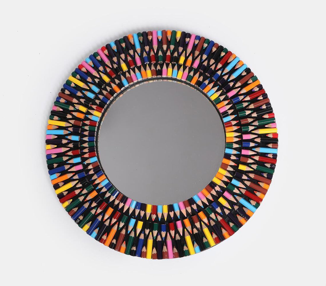 Handmade Colour Pencil Round Wall Mirror