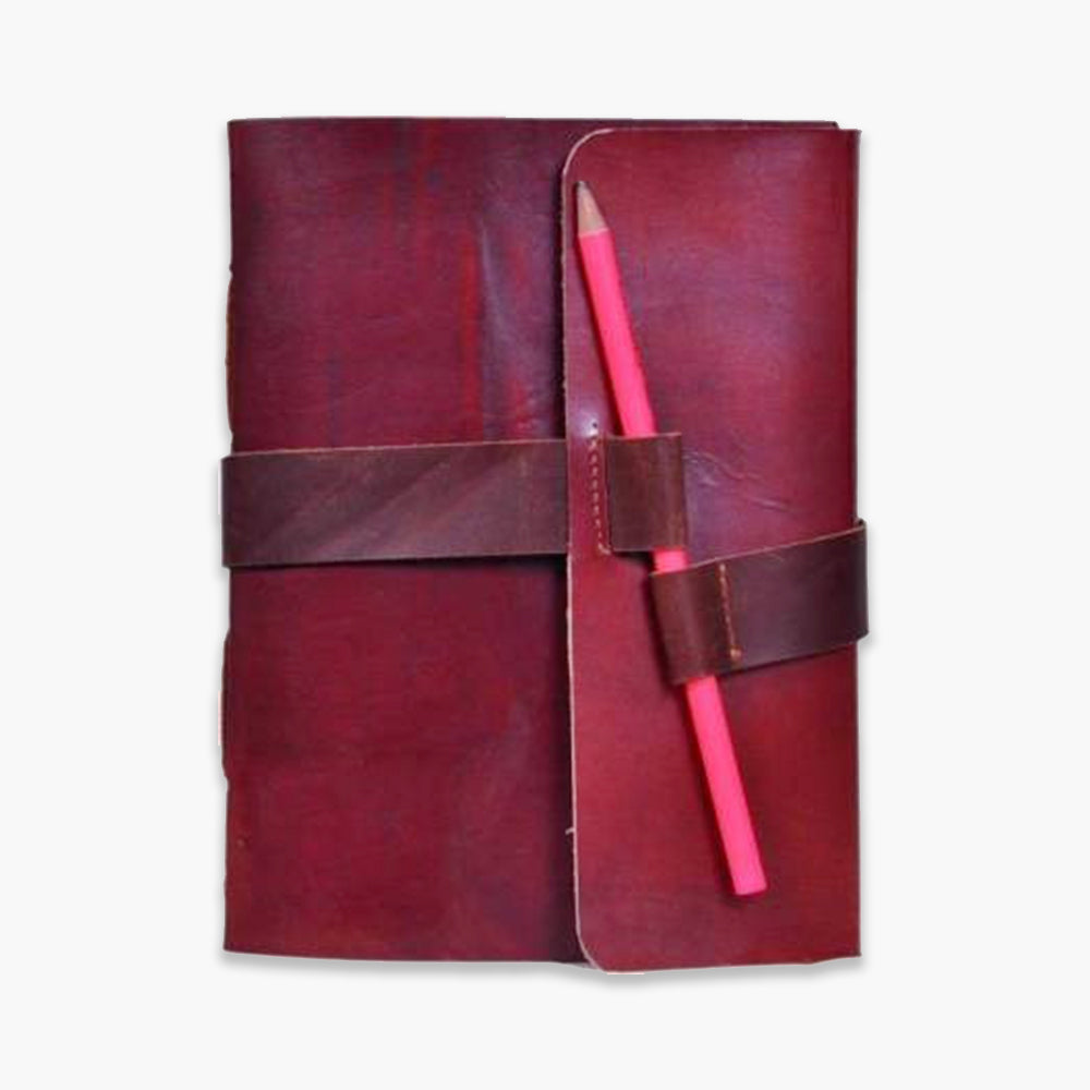 Handmade Leather Journal With Leather Belt Pencil Closure
