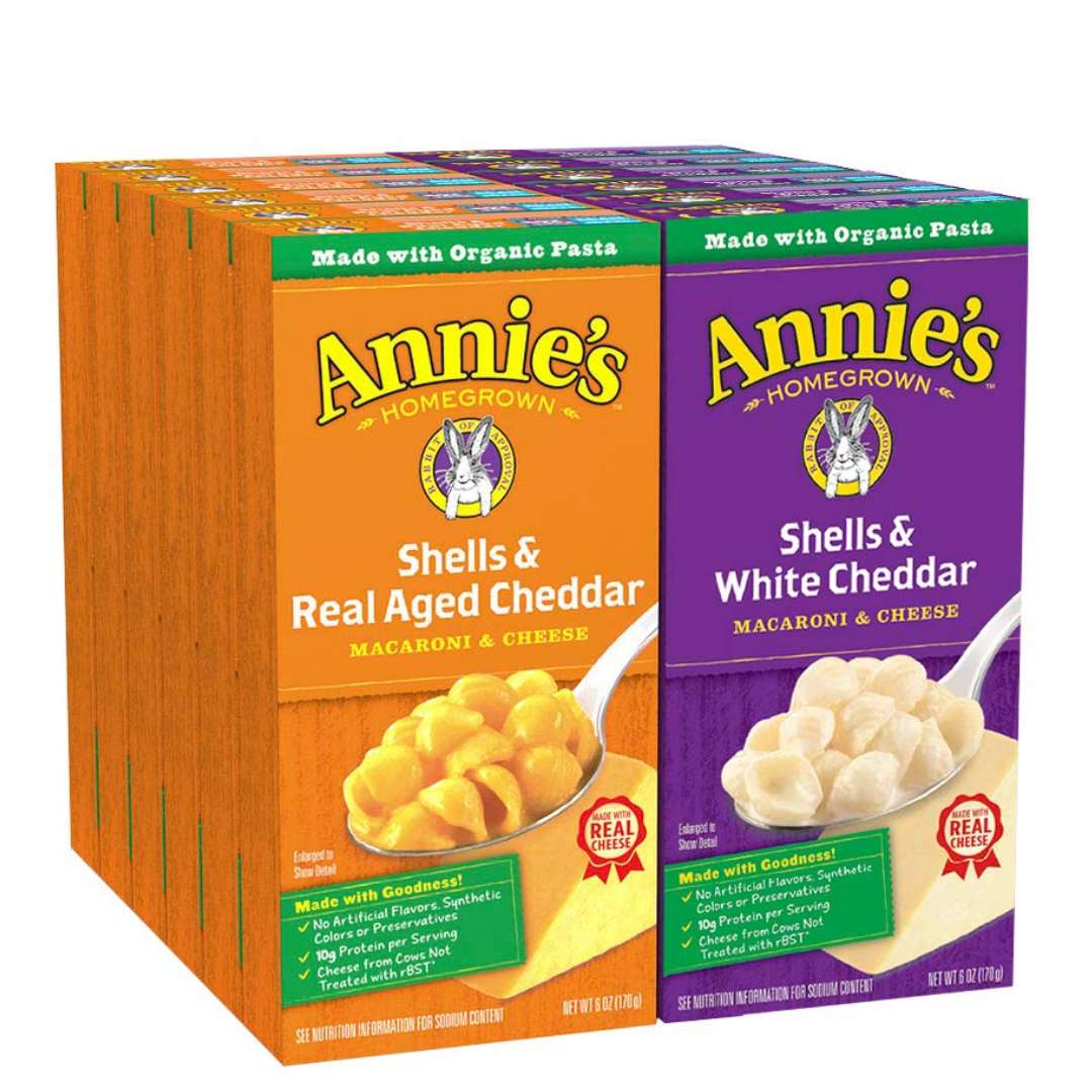 Annie's Organic Macaroni and Cheese Variety Pack, Shells & White Cheddar and Shells & Real Aged Cheddar, 6 oz (Pack of 12)
