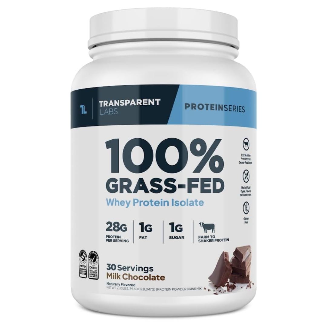 Transparent Labs Grass-Fed Whey Protein Isolate - Naturally Flavored, Gluten Free Whey Protein Powder with 28g of Protein per Serving & 9 Amino Acids - 30 Servings, Milk Chocolate