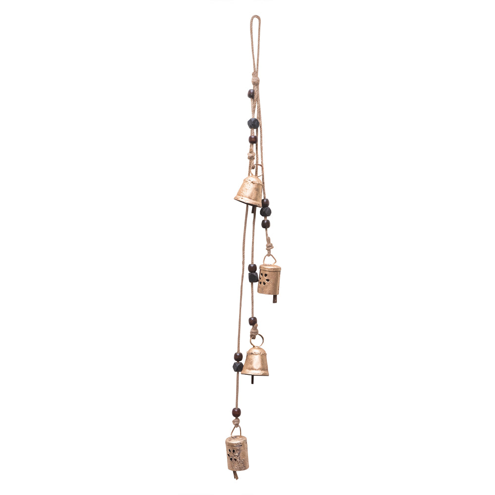 Decorate your indoor or outdoor spaces with these handmade copper bells. The hanging has four bells with wooden beads and a flower carved into each bell. The bells of the hanging produce a soothing sound and are believed to generate positivity in the surroundings. Perfect gift for friends and family.