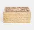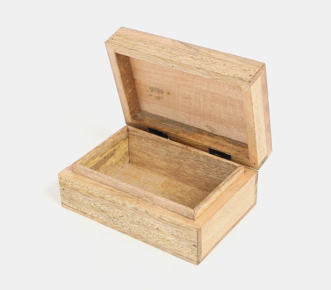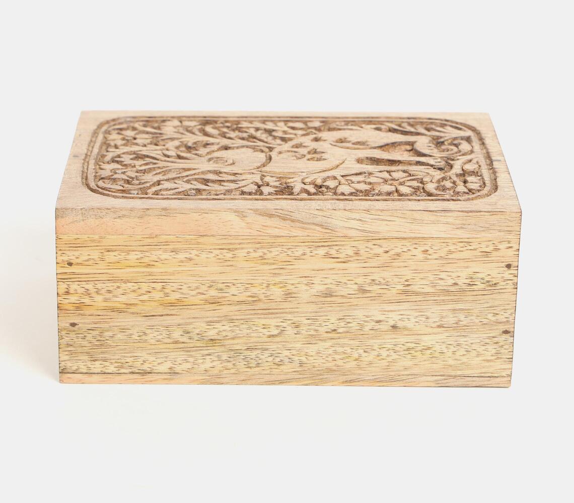 Seasoned wooden artisans have handcrafted this jewellery box giving it an aesthetic character that sets it apart from regular storage utility. Beautiful designs hand carved on mango wood's wide variety of brown hues give them a raw, exotic personality that can take your customers' dressing set up to a whole new level. Mango wood is sturdy, low maintenance and yet never feels out of place with high taste or minimalist spaces. While the offering is sure to charm the table tops, its build allows frequent usage.