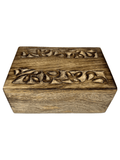 Seasoned wooden artisans have handcrafted this jewellery box giving it an aesthetic character that sets it apart from regular storage utility. Beautiful designs hand carved on mango wood's wide variety of brown hues give them a raw, exotic personality that can take your customers' dressing set up to a whole new level. Mango wood is sturdy, low maintenance and yet never feels out of place with high taste or minimalist spaces. While the offering is sure to charm the table tops, its build allows frequent usage.