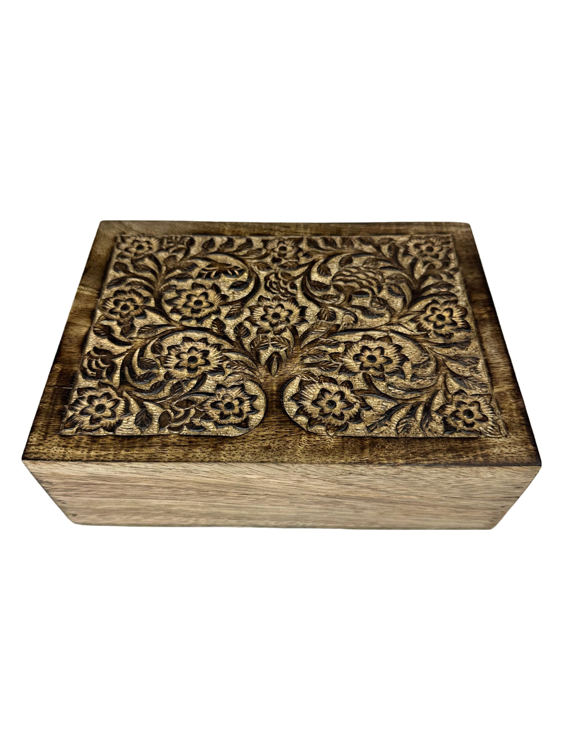 Hand Carved Mango Wood Floral Pattern Burnt Finish Box