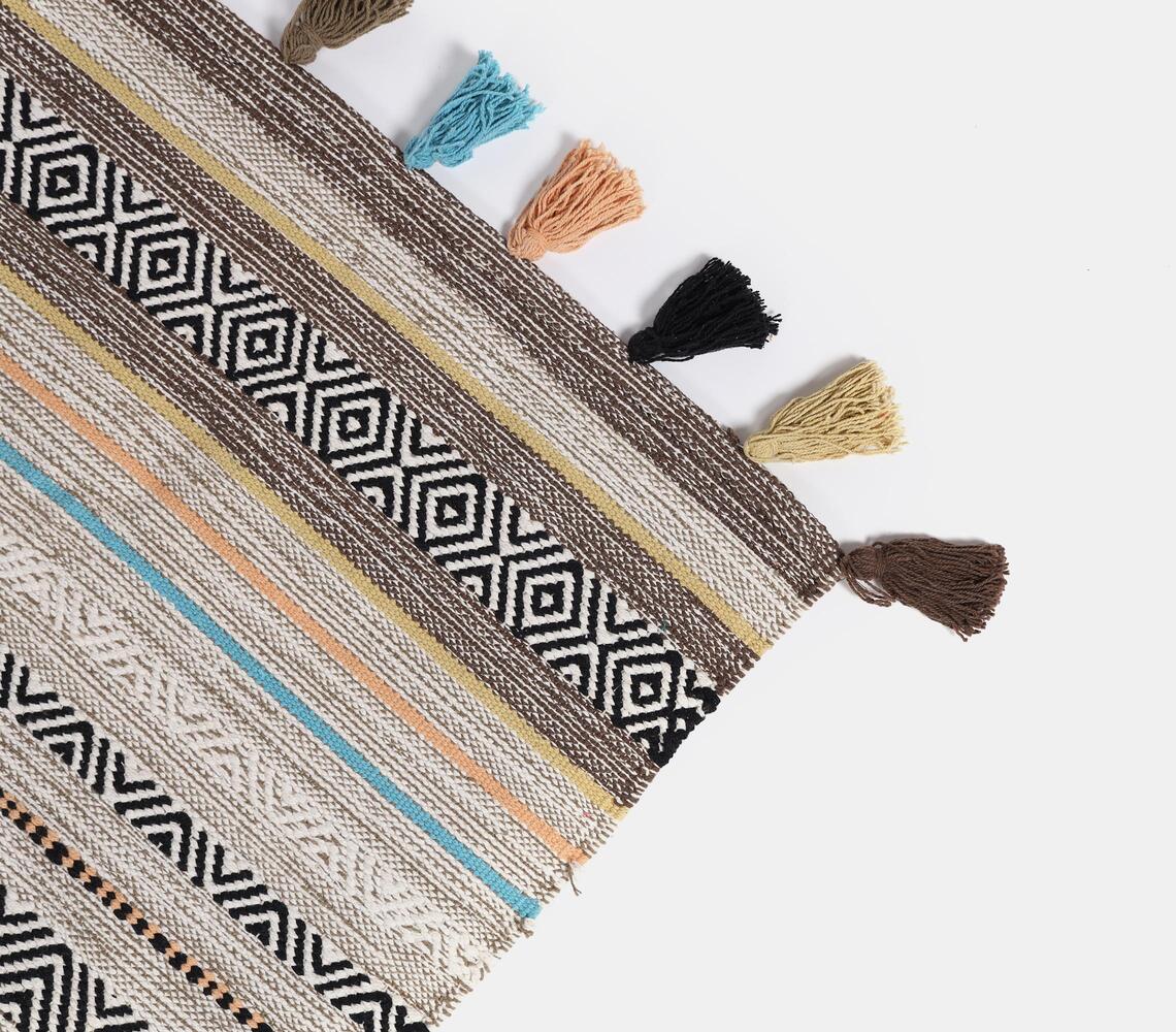 Adding a touch of warmth to your cosy home, this beautiful rug is crafted by artisans. Made from cotton, it has the right texture and inherent softness of the material. While it beautifully flaunts the simplicity of its classic, rustic aesthetic in your living space, the offering stands out for its low maintenance and durability. Complementing any setting, this rug is a tactile delight for your feet.