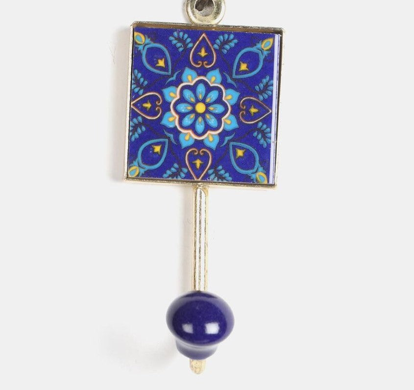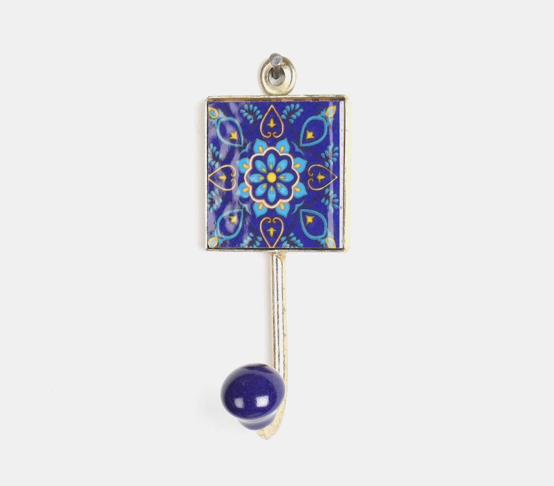 Ceramic Coat Hook - Folk Print (Blue)
