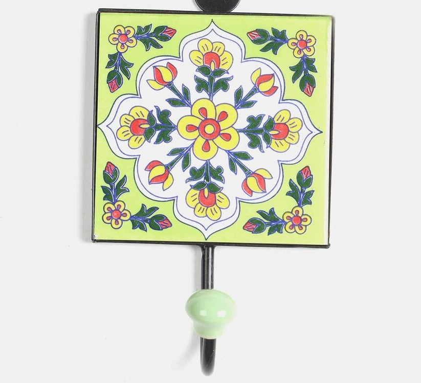 Traditional folk design ideas make their way into contemporary decor applications with this simple yet aesthetically effective ceramic key and coat holder hook. It has been handcrafted by local Indian artisans and carries the authenticity of the subcontinent's bright design theme. So, the offering brings stark bohemian character into utility-based, modern living spaces that cannot afford additional room for decoration.