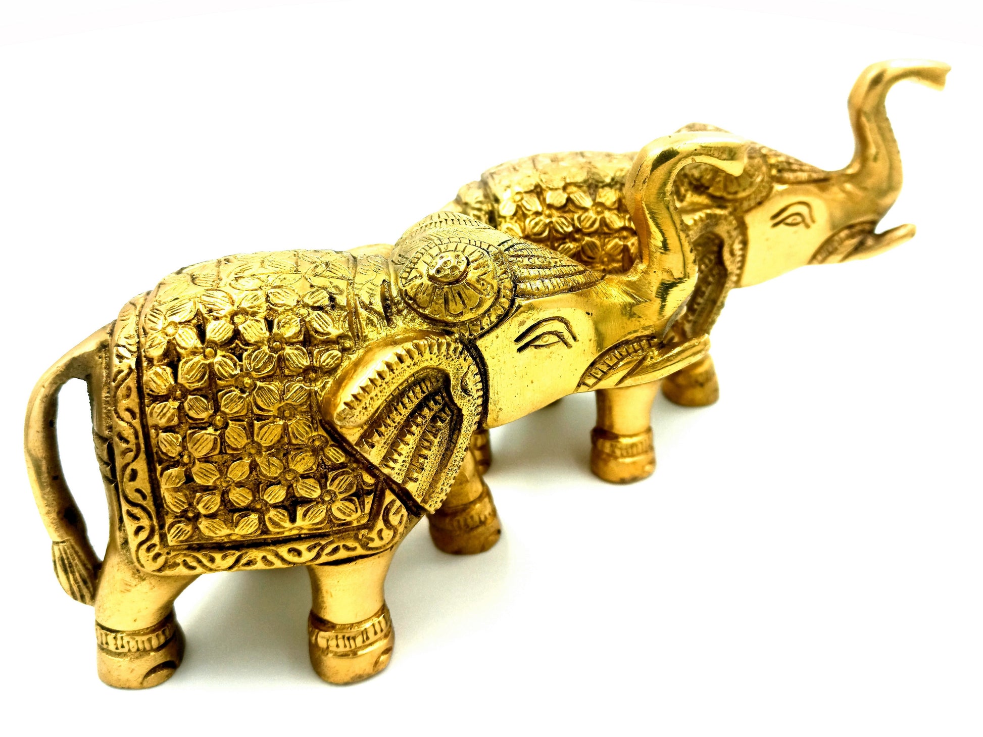 Give your home this elegant and royal-looking showpiece of an elephant. An ethnic Indian artwork handmade by renowned artist-sans. These are exquisite pairs of elephants in brass. This mesmerising pair of elephants can be placed in your living room or at vantage points at home or office. This is a fine work of art and helps in enhancing your home or office décor. It would make an excellent gift item during Housewarming, festive occasions, anniversaries, weddings, birthdays etc. It is also an excellent corporate gift.