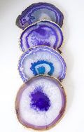 In addition to their aesthetic appeal, purple or violet agate coasters are also functional as they provide a protective surface for furniture from moisture and heat damage caused by beverages. They are commonly used in living rooms, dining rooms, and home offices to add a touch of sophistication and style to the decor. Purple or violet agate coasters are also popular as gifts for special occasions like weddings, housewarming parties, and birthdays.