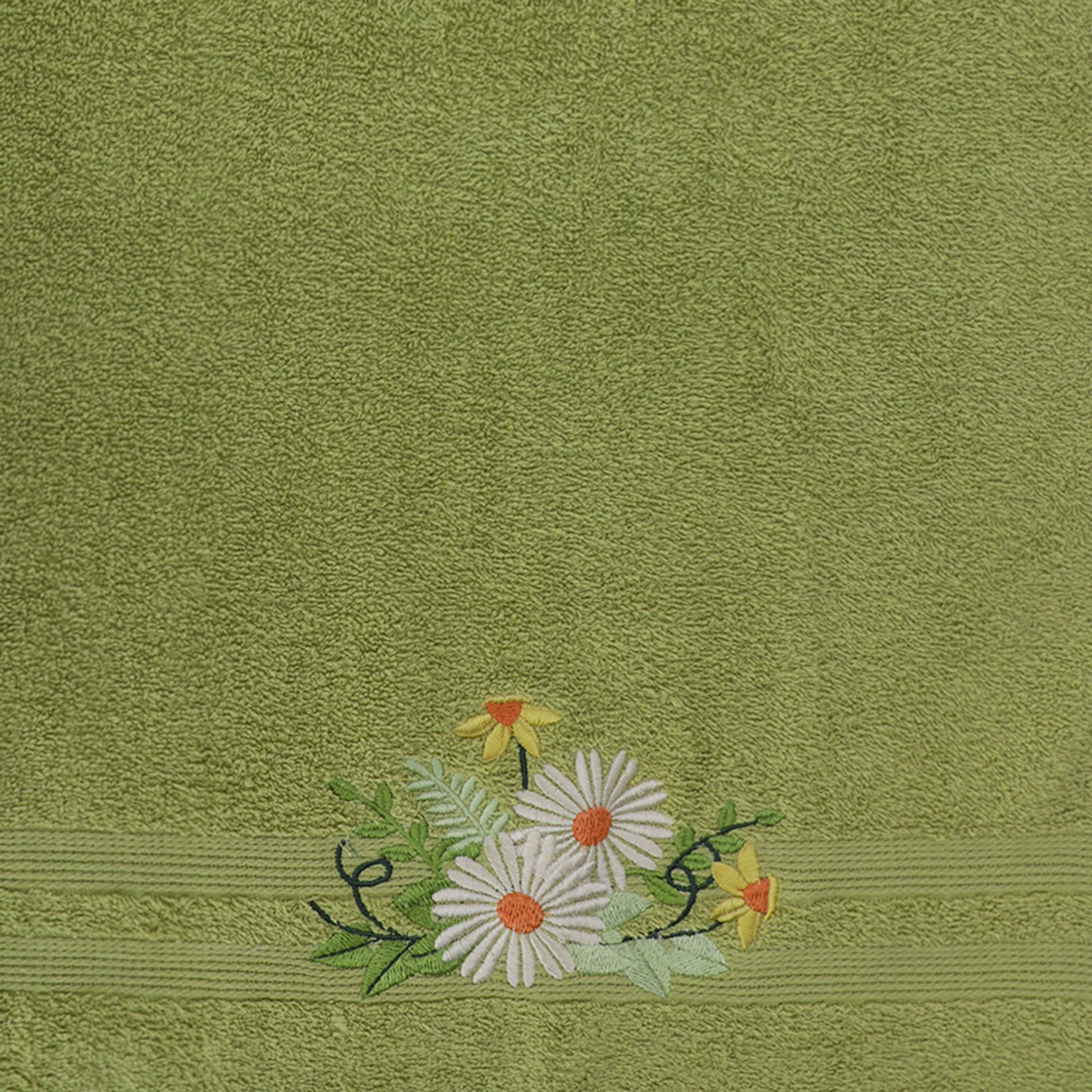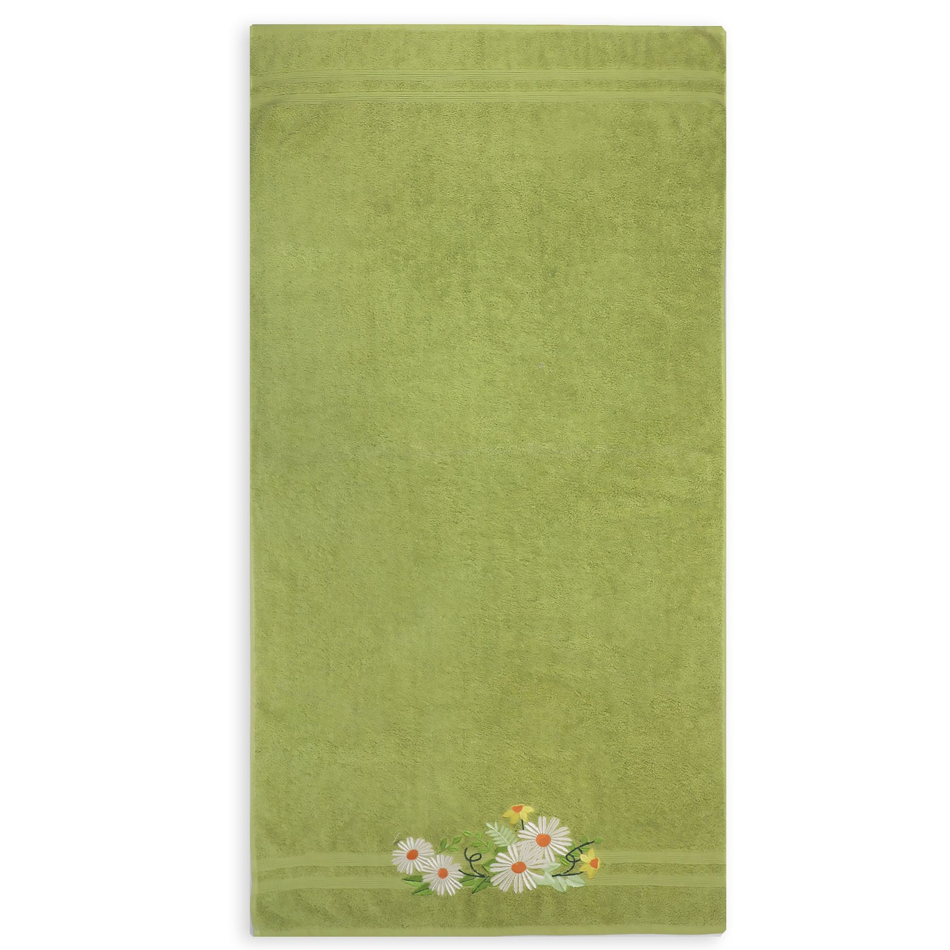 500 GSM Embroidered Bath Towel (Flower_Light Green)