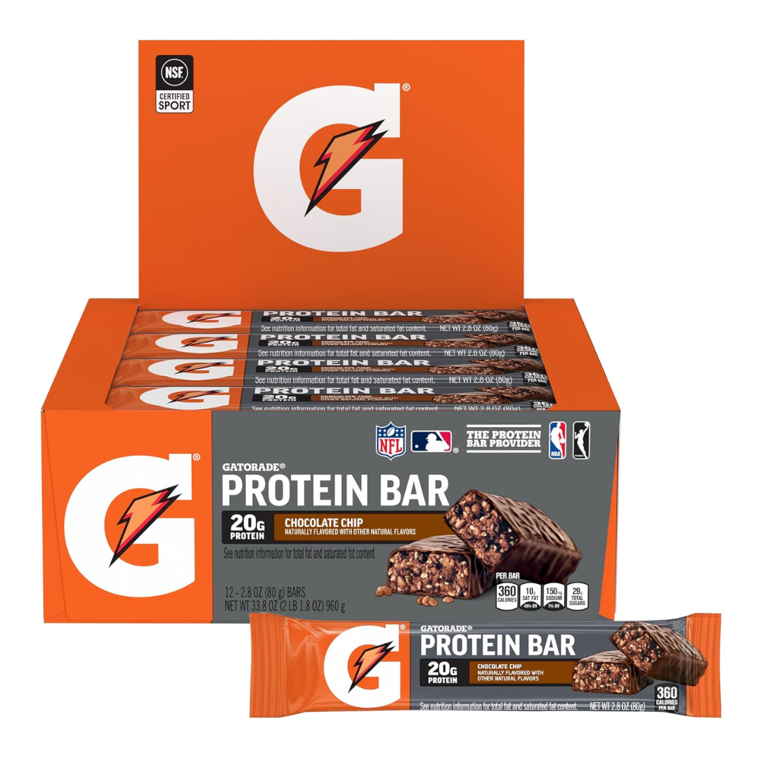 Gatorade Whey Protein Recover Bars, Chocolate Chip, 2.8 ounce(Pack of 12)