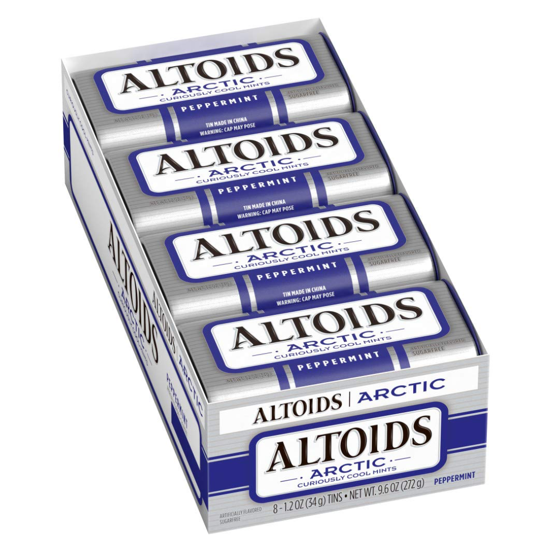 ALTOIDS Arctic Peppermint Breath Mints - Altoid Hard Candy Bulk Pack, 1.2 oz Tin, Pack of 8