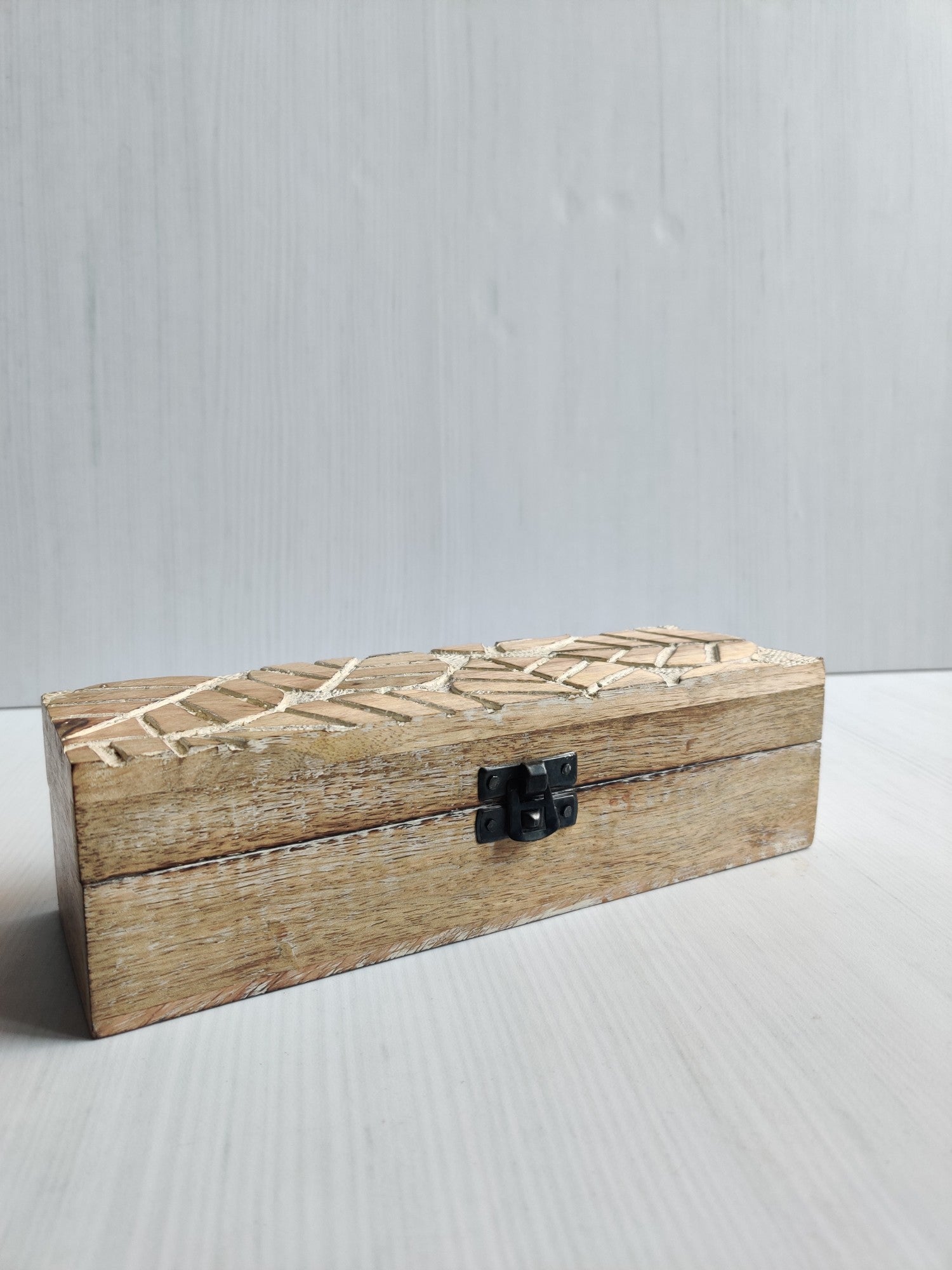 Protect and preserve your valuables with this handcrafted leaves engraved wooden box.