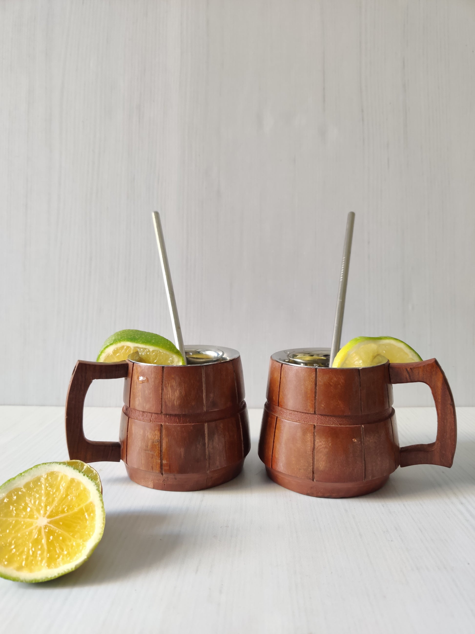 Wooden Rustic cup with stainless steel in Sheesham Wood handmade by the best artisans in India.