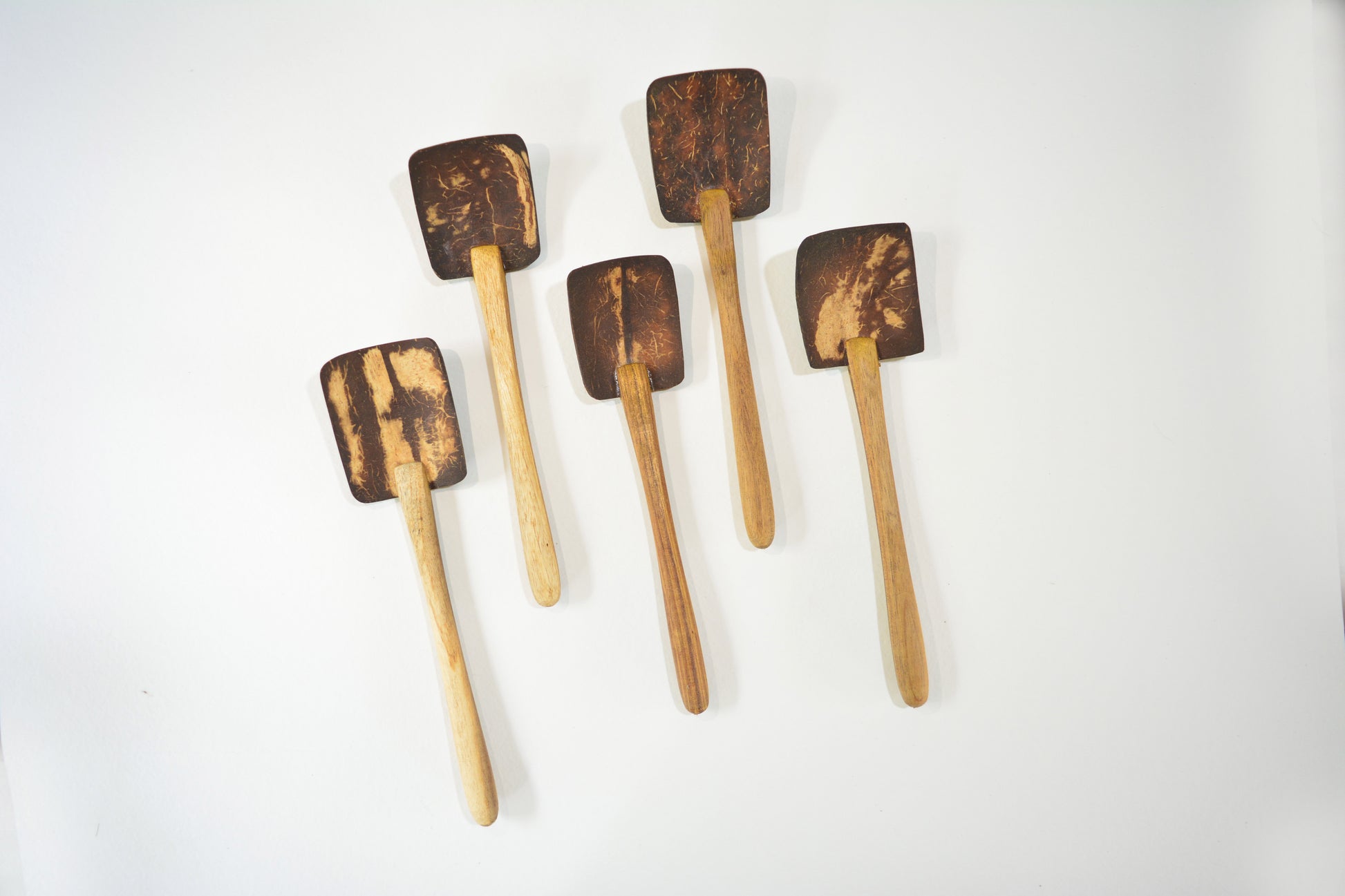 Finely handcrafted organic coconut shell sqaure small serving spoons. Natural-Organic and biodegradable products used. These little pieces of tropical paradise make a great addition to your kitchenware.