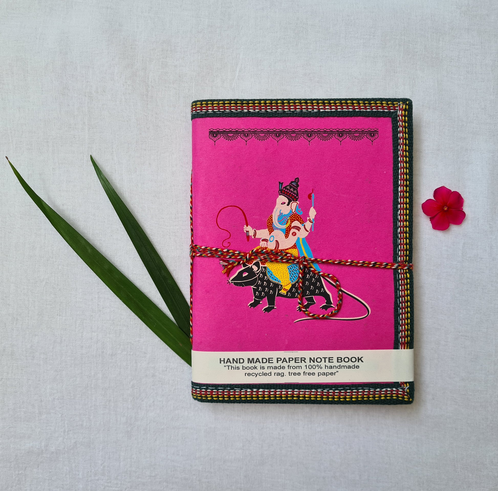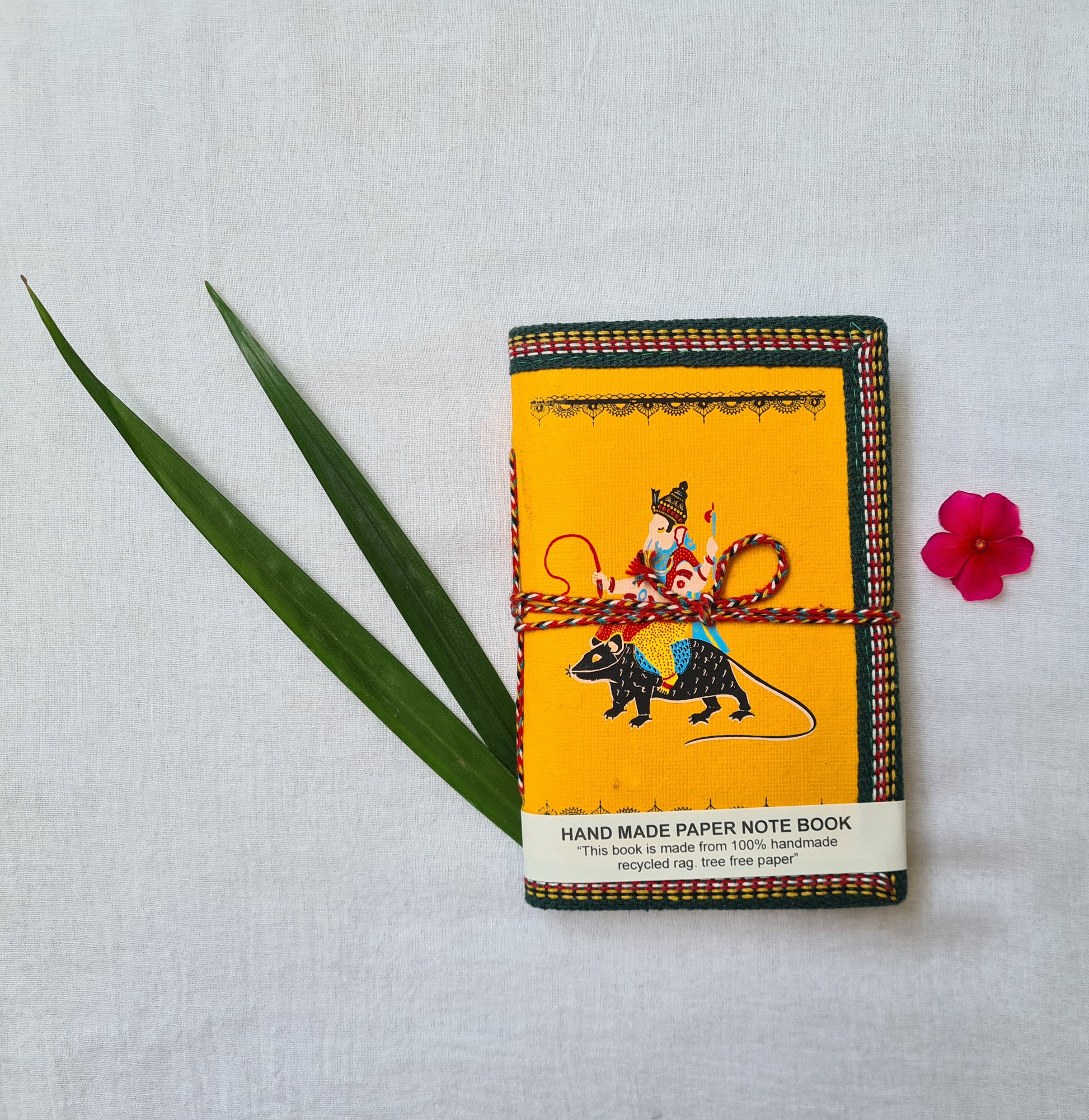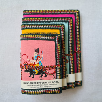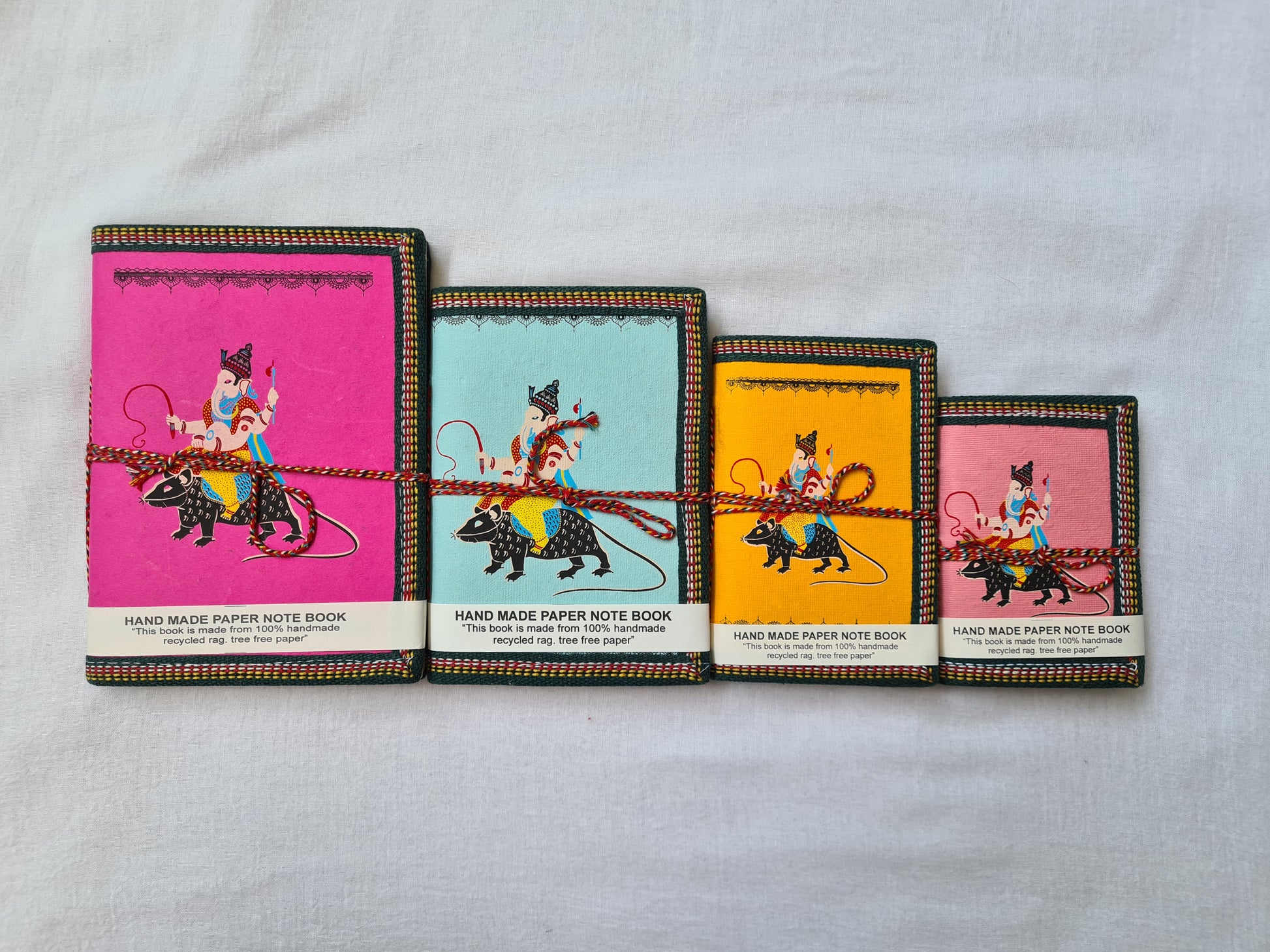 Handmade Paper Diary Set Of 4- Ganeshji With Mouse Multicolor (assorted Color)