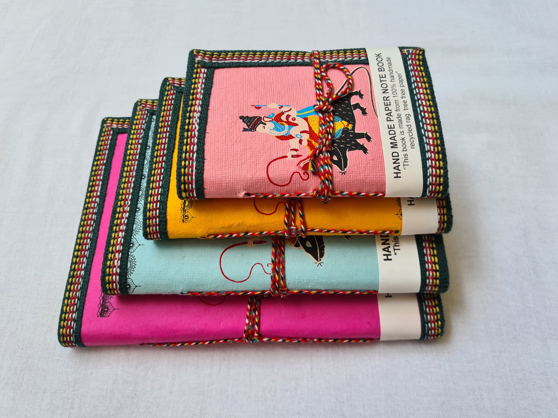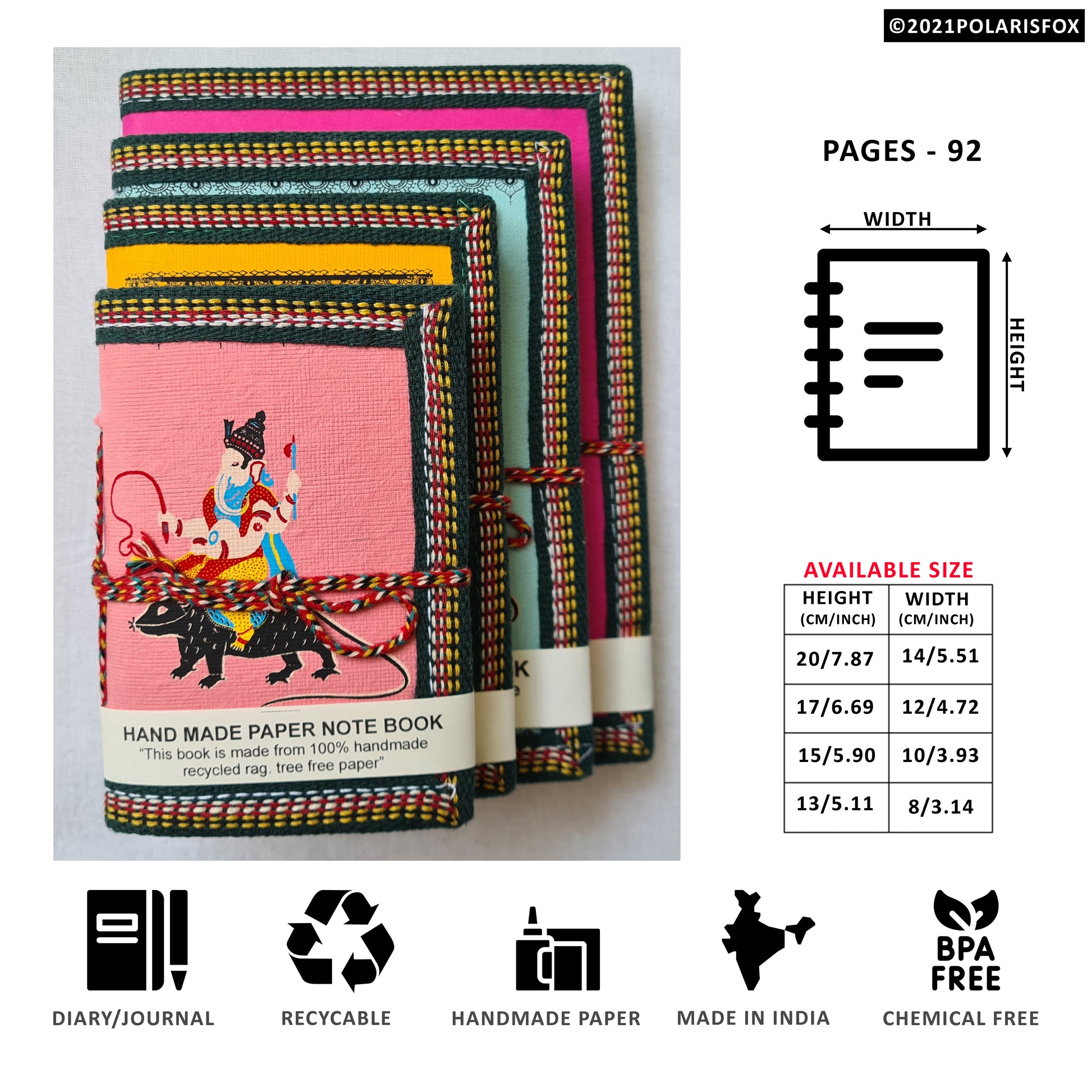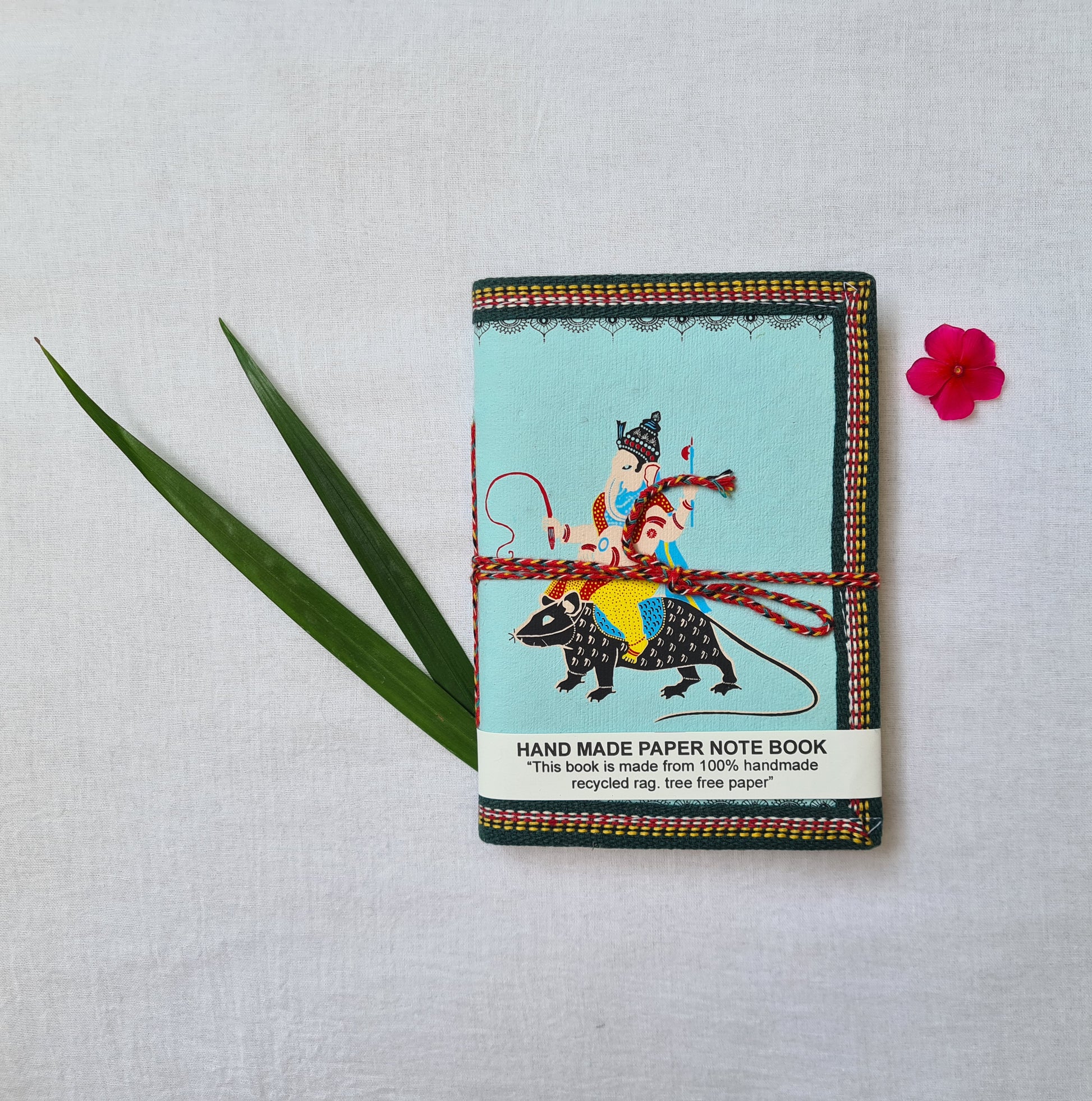 Handmade Paper Diary Set Of 4- Ganeshji With Mouse Multicolor (assorted Color)