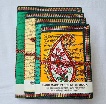 Handmade Paper Diary Set Of 4- Leaf Multicolor (assorted Color)