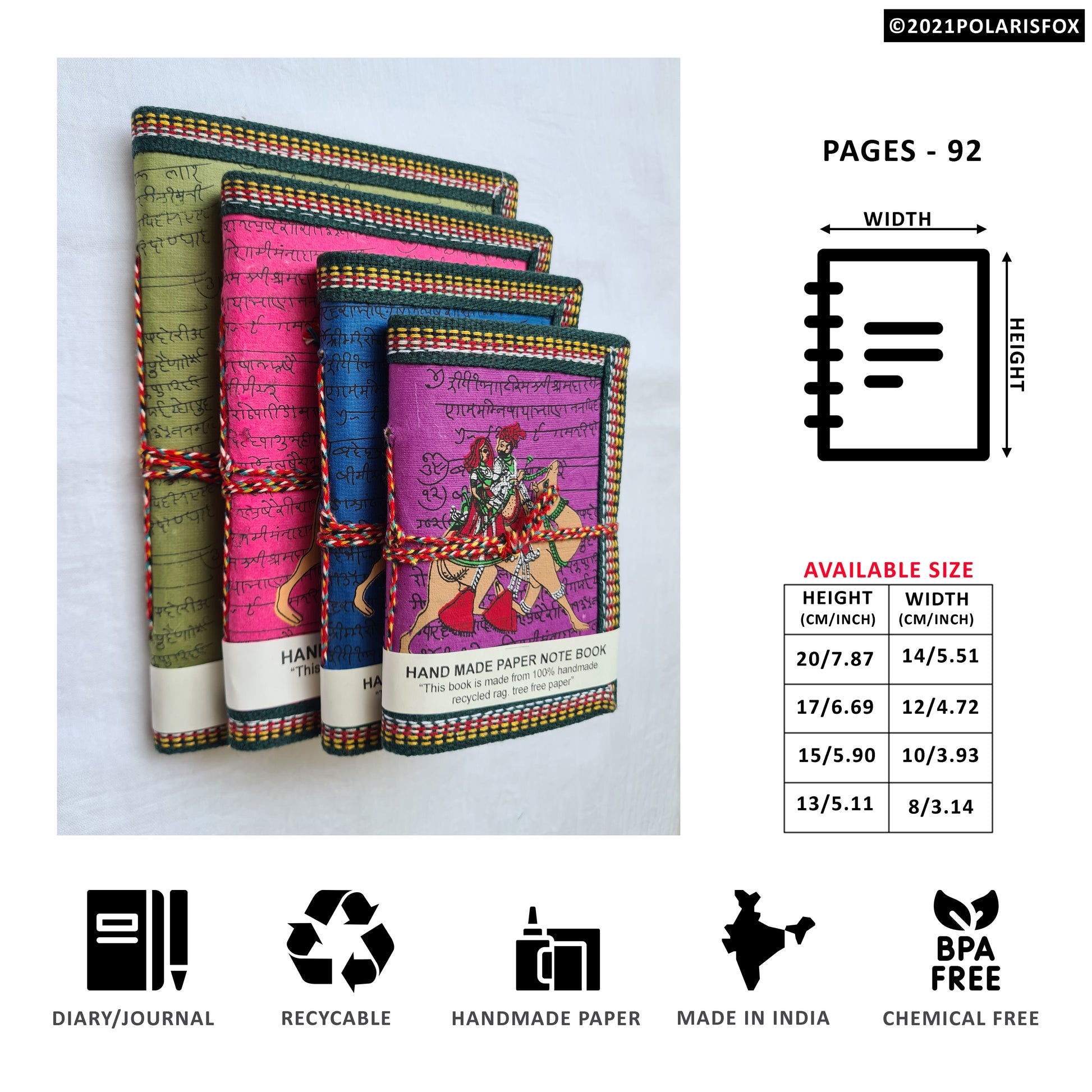 - Dimensions: (Diary 1)-20x14cm, (Diary 2)-17x12, (Diary 3)-15x10, (Diary 4)-13x8 (All in cm)