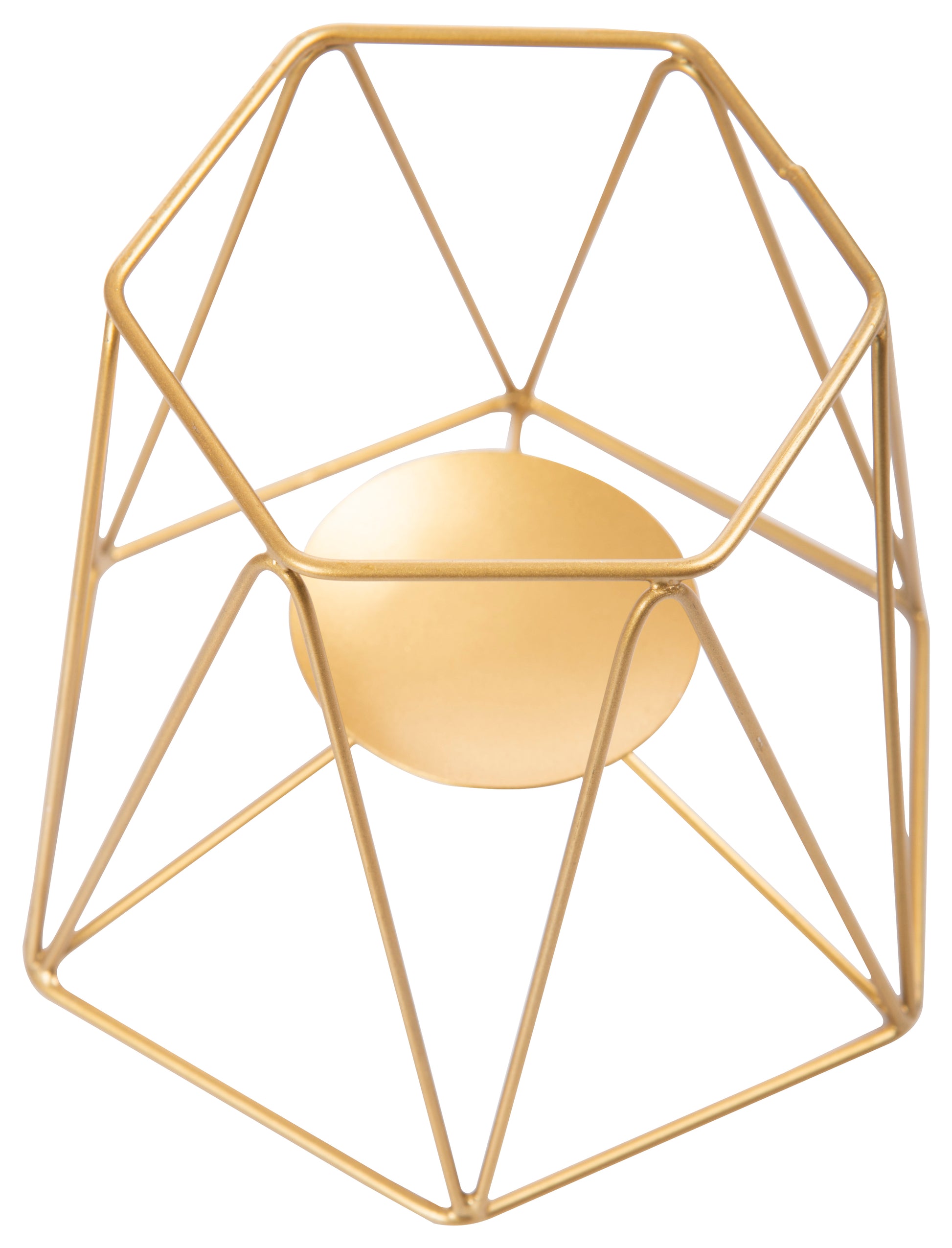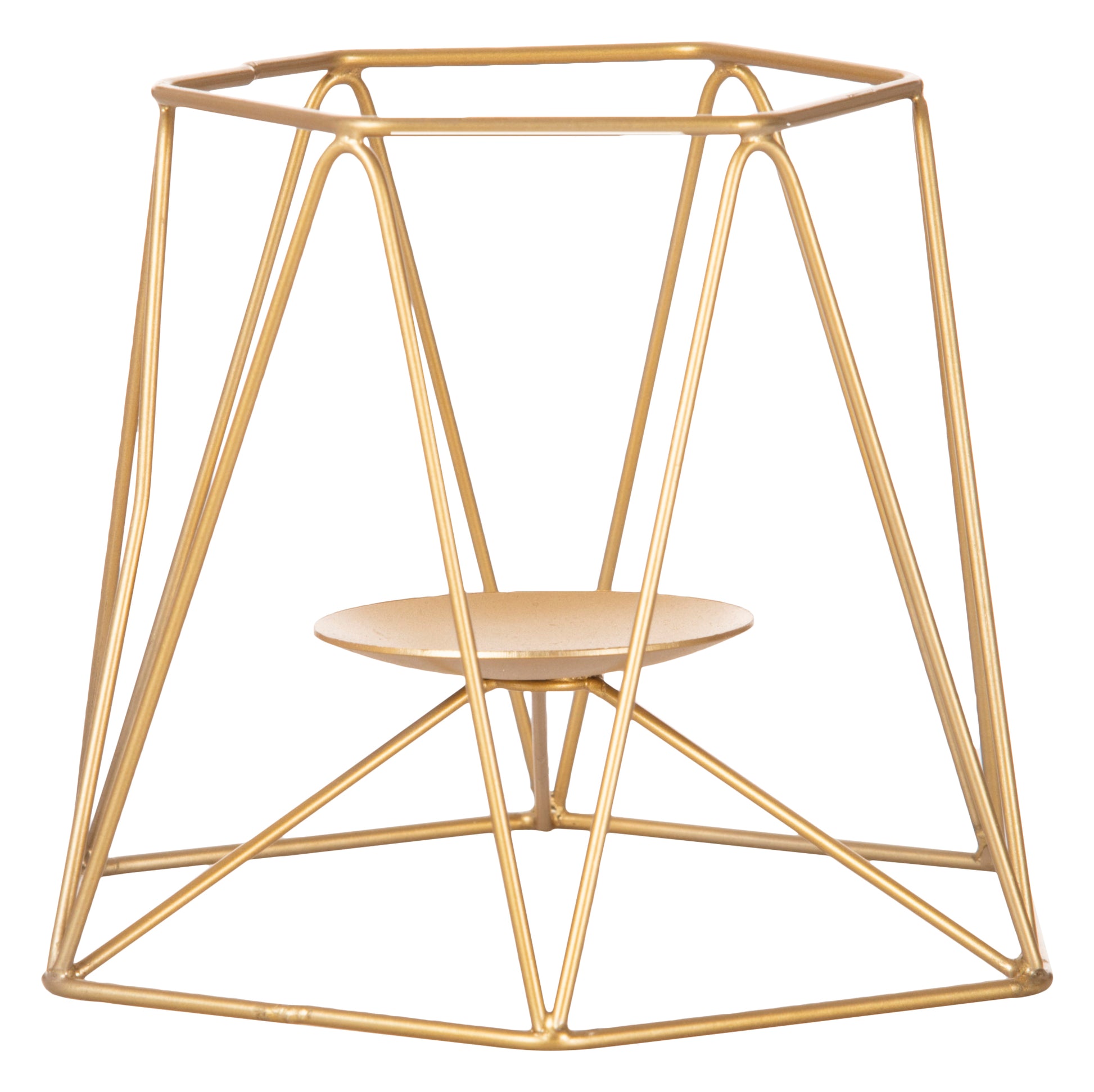 Simple yet stylish, this contemporary gold-colored geometric candle holder will add a sense of modern simplicity to virtually any living space. Enhance the elegance of your home with these beautiful golden wire candle holders that add a modern design to any room. Ideal gifting option for house warming, wedding, party etc. Use any candle of 3-inch diameter or less. This is a handcrafted product and may have slight irregularities which only add to the charm of the finished product making it an exquisite piece.