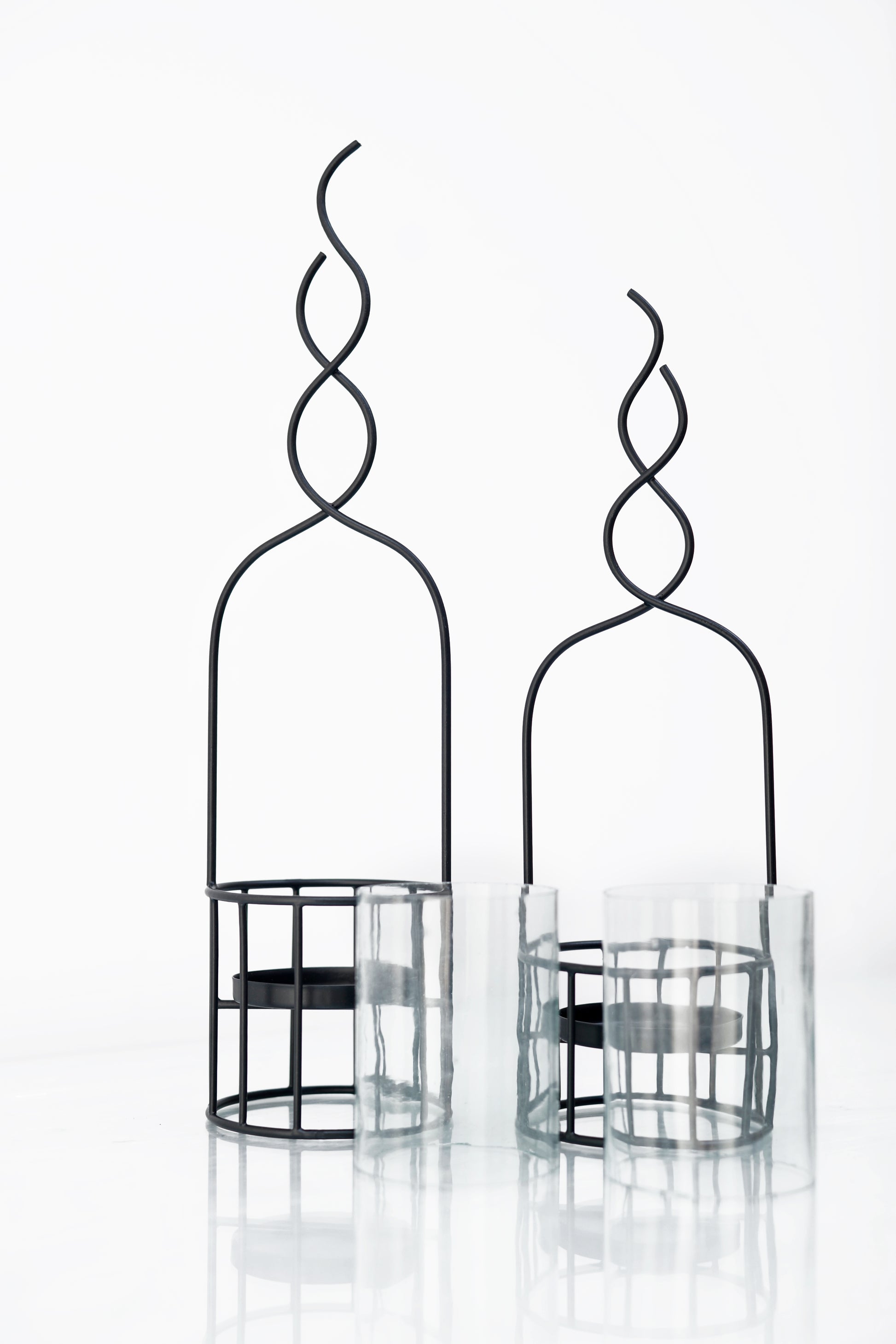 A skillfully handcrafted iron basket set of candle holders is designed to complement your candles. This masterpiece has an exquisite design and will lighten up your drawing room and is also an ideal present option. Candles of size 2 inches can be used. This is a handcrafted product and may have slight irregularities which only add to the charm of the finished product making it an exquisite piece. We recommend dusting with a soft dry cloth. Do not use abrasive cleaner. Do not leave spills unattended.