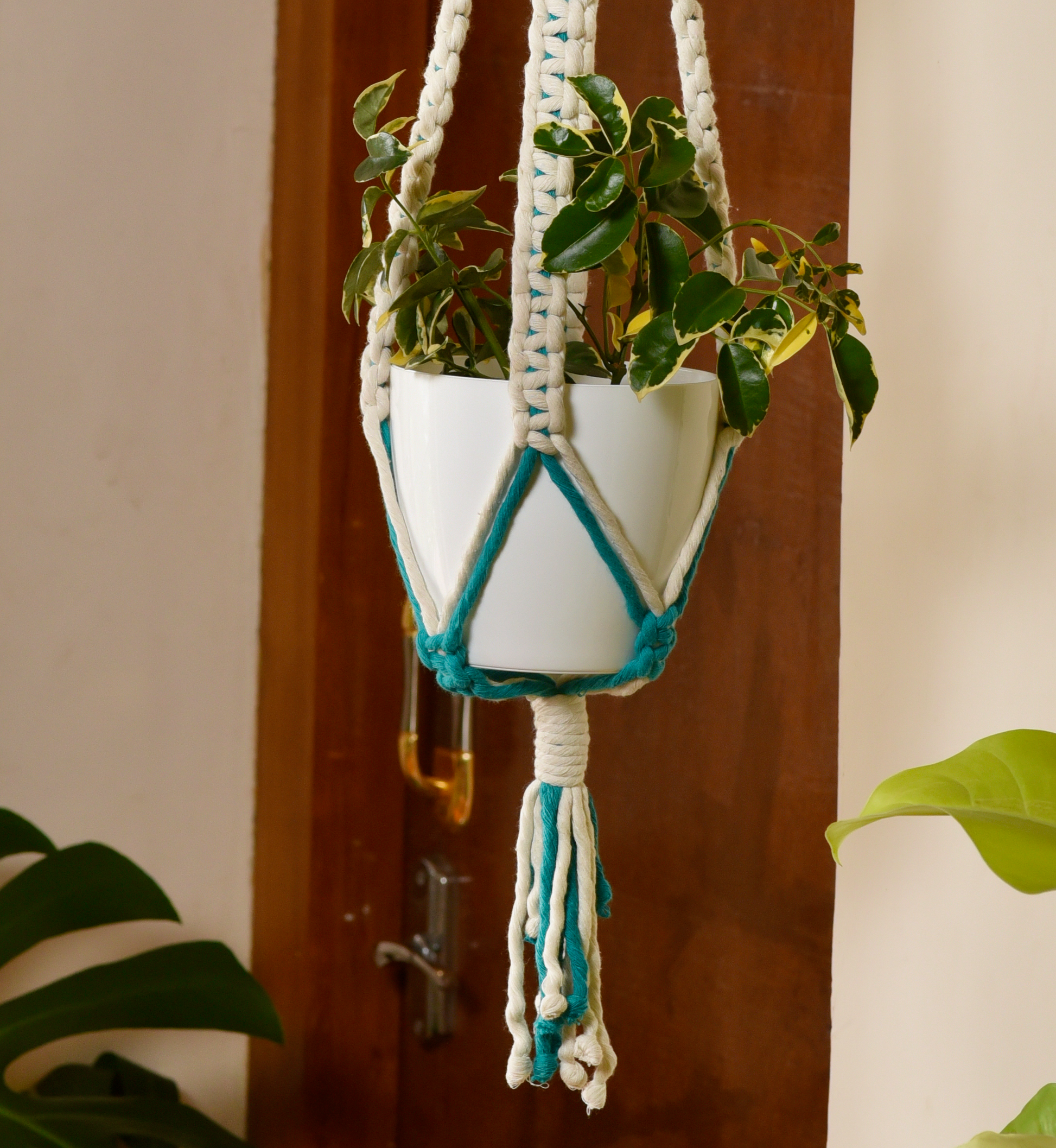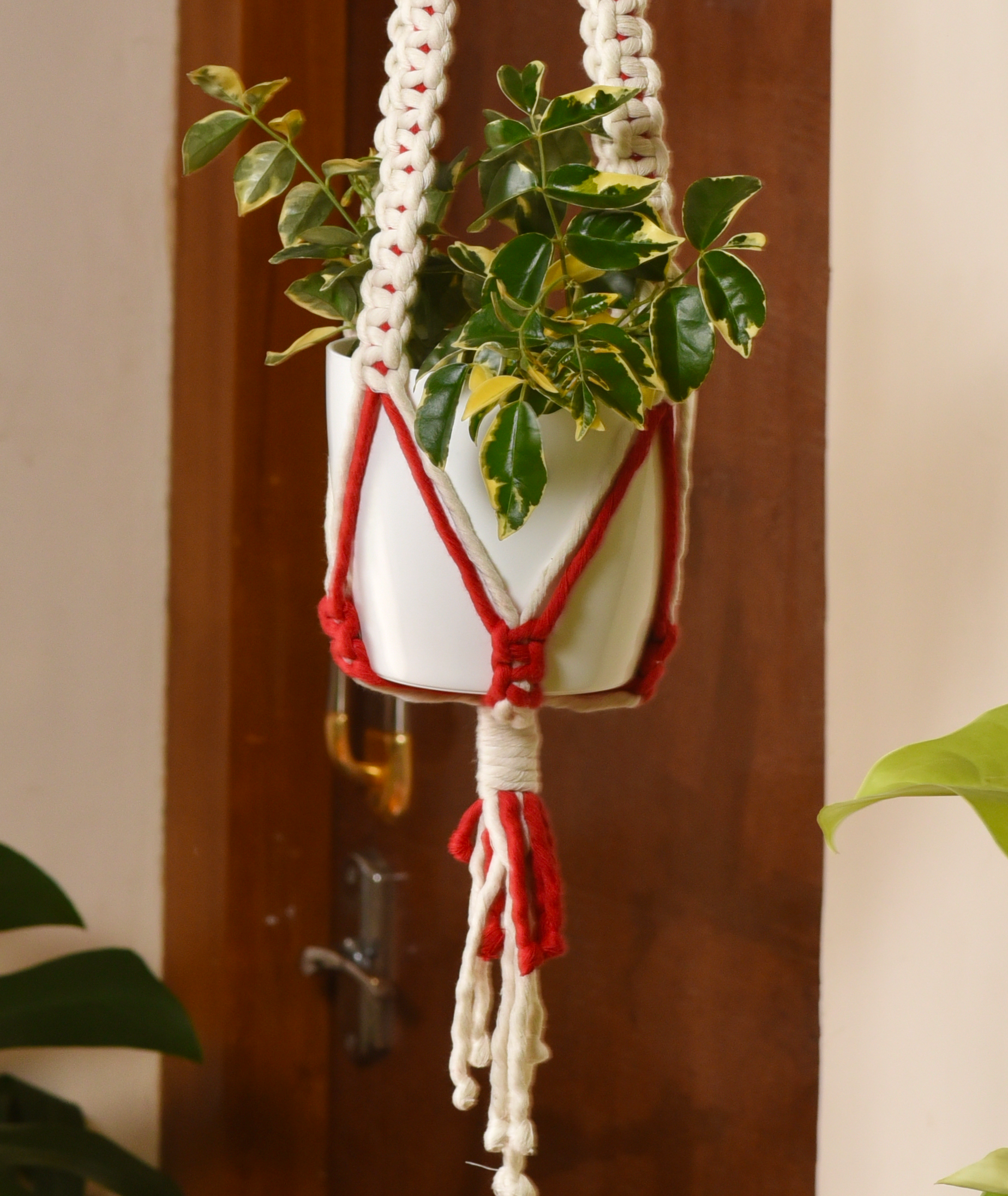 Premium Macrame Cotton Boho Plant Hanger Without Pot And Plant (jasmine)