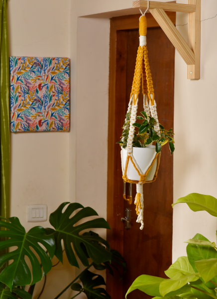 Looking for elegant and attractive ways to hang your favourite plant in your home or office. This cotton macrame plant hanger does just that for you. Use this handmade macrame hanger for pots or planters to hang your precious indoor or outdoor plants in your living room, bedroom, bathroom, balcony or your home office. Fits any pot or planter between 4-10 inches diameter.