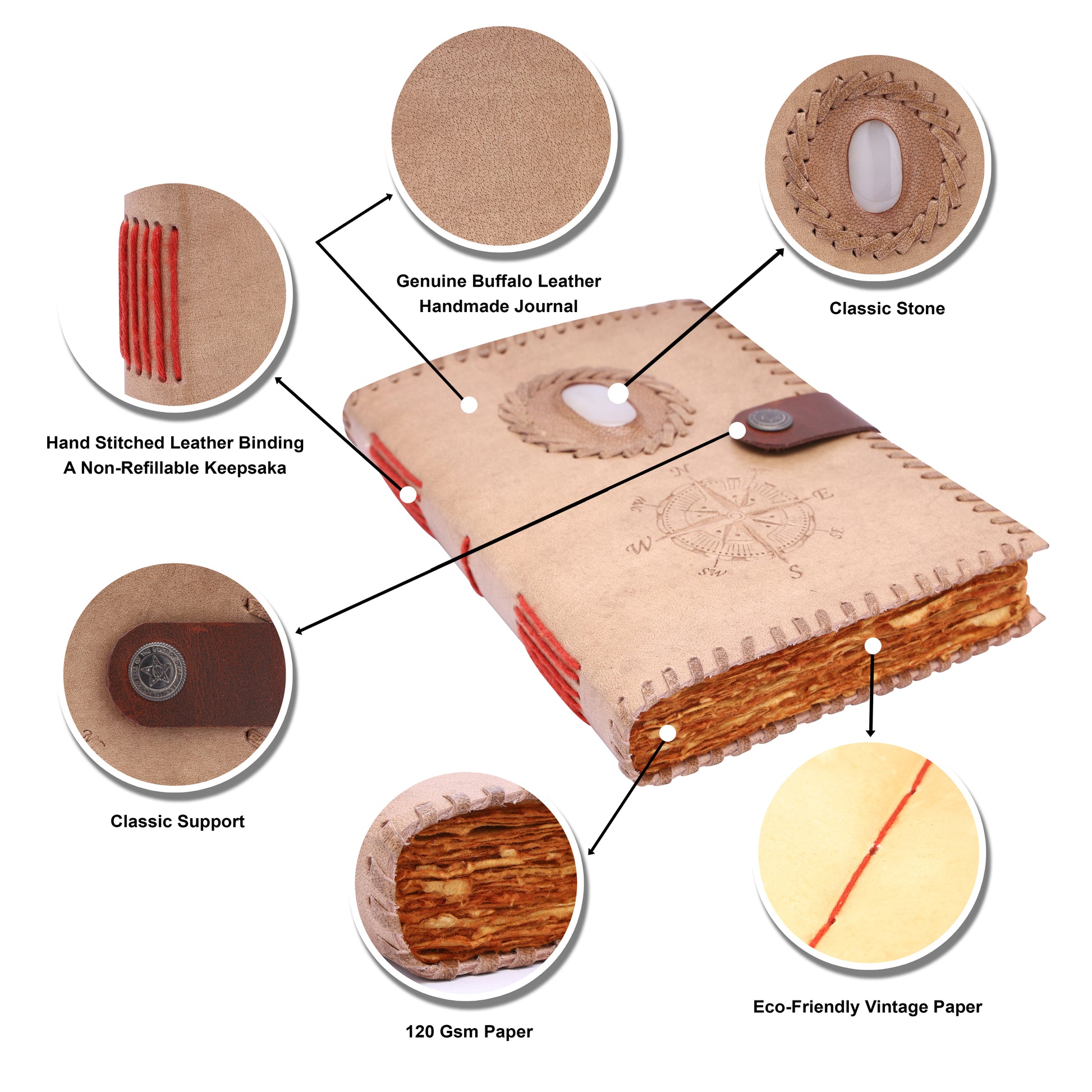 Handcrafted out of the finest quality of leather this journals comes with a antique deckle edge paper & buckle lock. Highly durable & functional, this record book can be used for personal as well as professional.