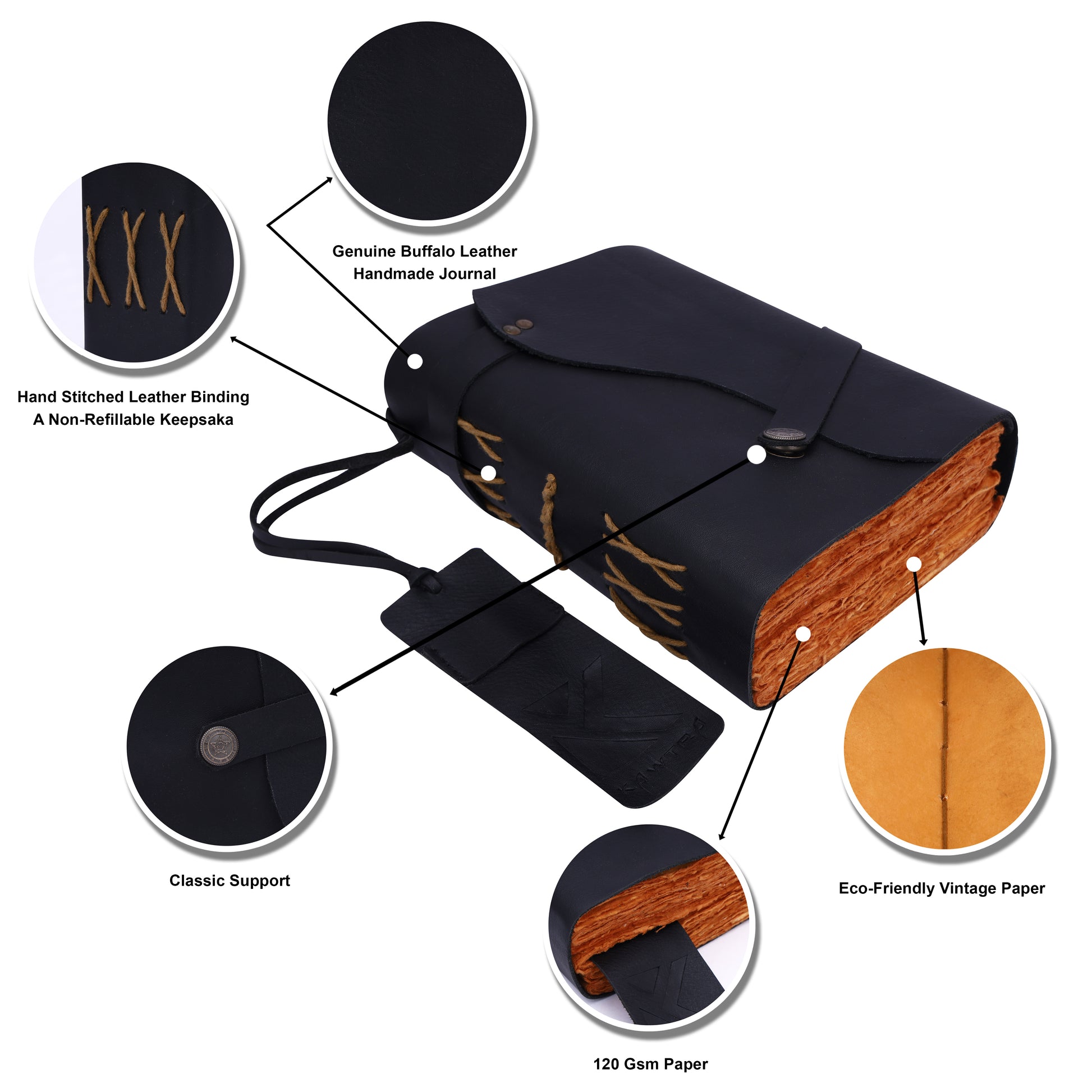 - Material: Leather cover with deck ledge paper