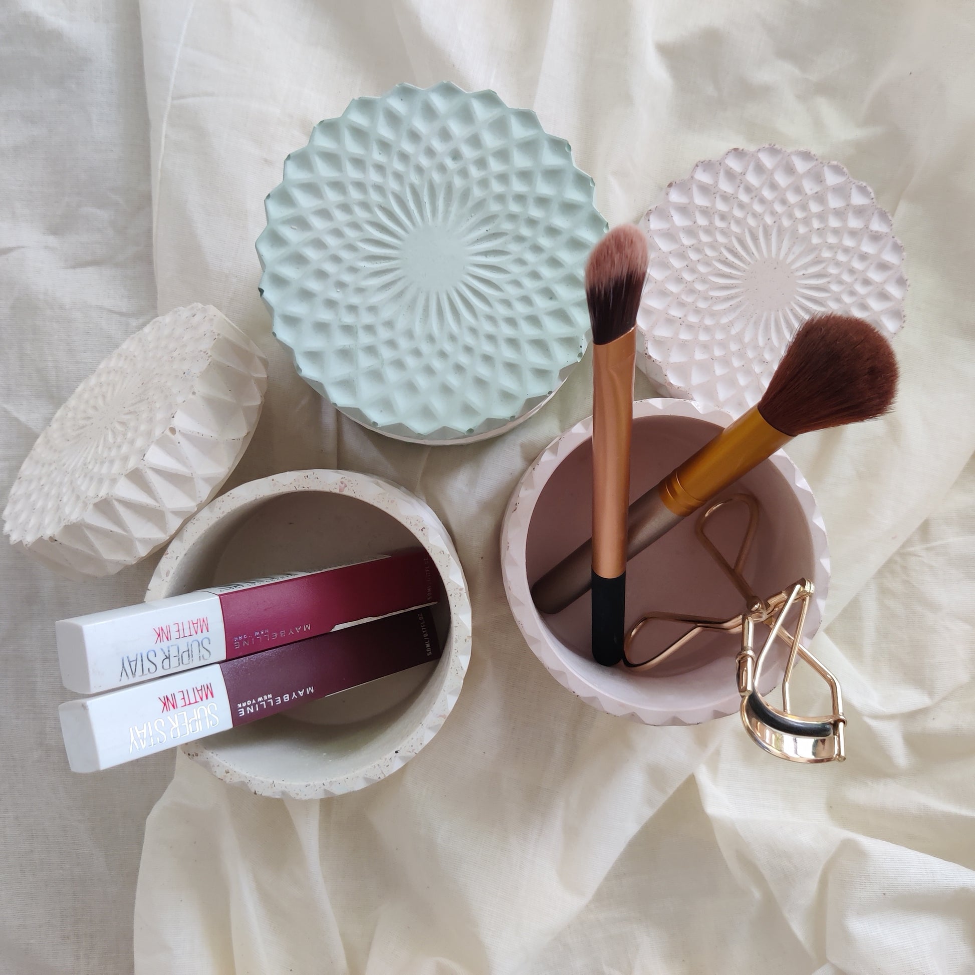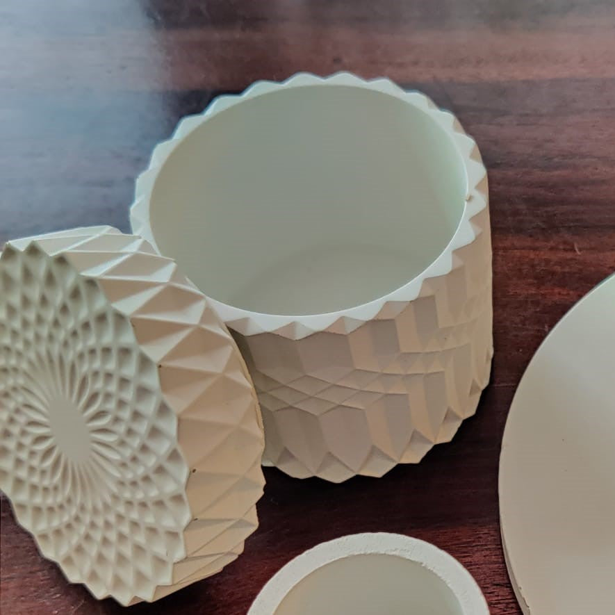 All our products are designed and handcrafted with love. Raw materials used are safe and high temperature resistant. The products are multifunctional and protected with a water-resistant coating that is non-toxic and eco-friendly. The finished products might have some natural wholes and inconsistent textures due to the nature of how concrete behaves. These textures and variations make all our pieces unique, one of a kind, and not mass-produced.