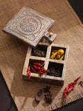 Traditional beautifully carved handcrafted vintage spice box. It can be used to store nuts or saunf, supari, mishri, elaichi. Spruce up your kitchen as a spice box or use it on your dining table.