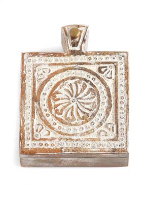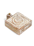 Handcarved Square Box In Whitewash Finish