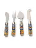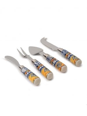 Stainless Steel Set Of 4 Cutlery With Fork Spreader Cake Server And Knife With Yellow Ceramic Handle