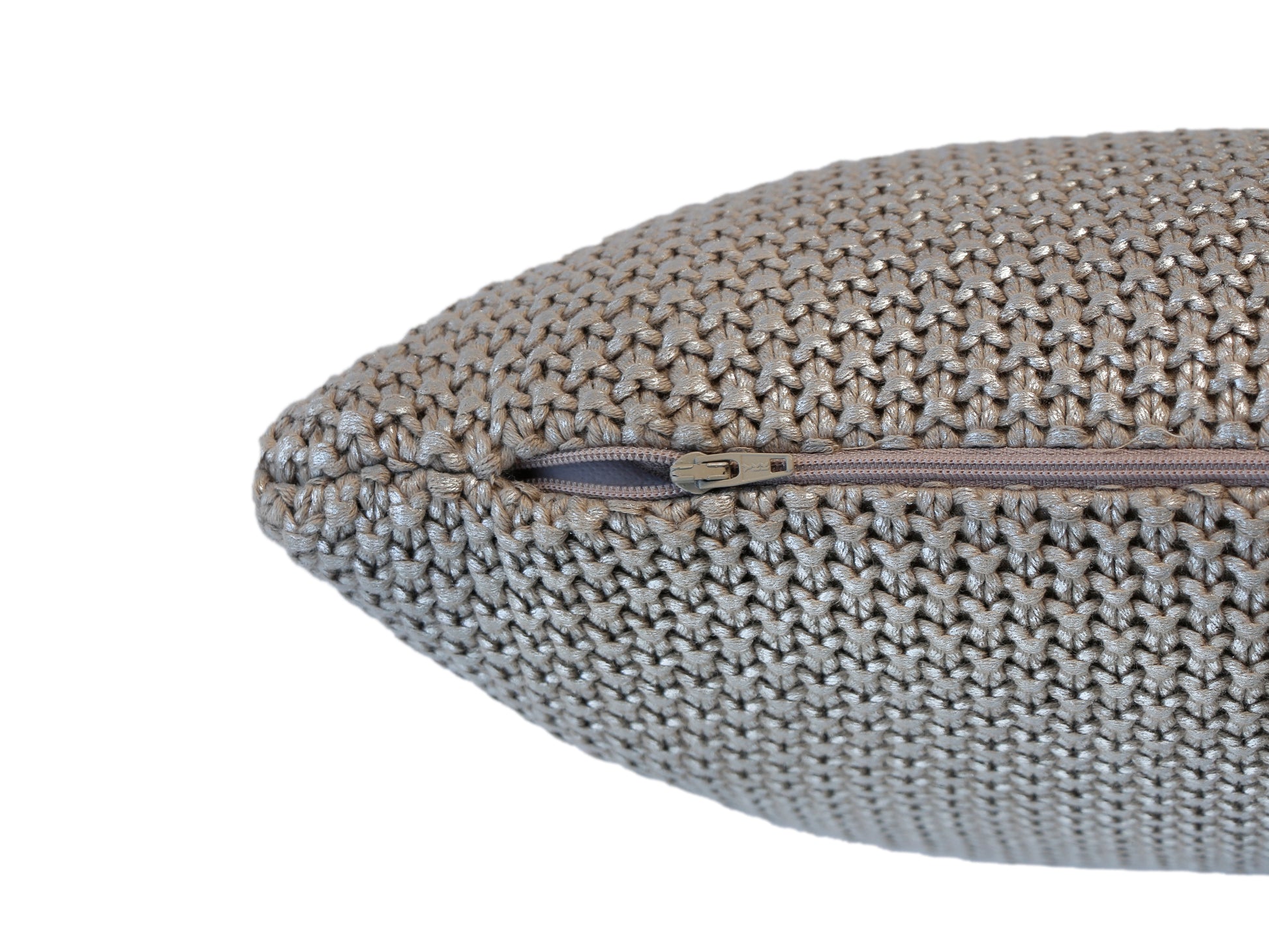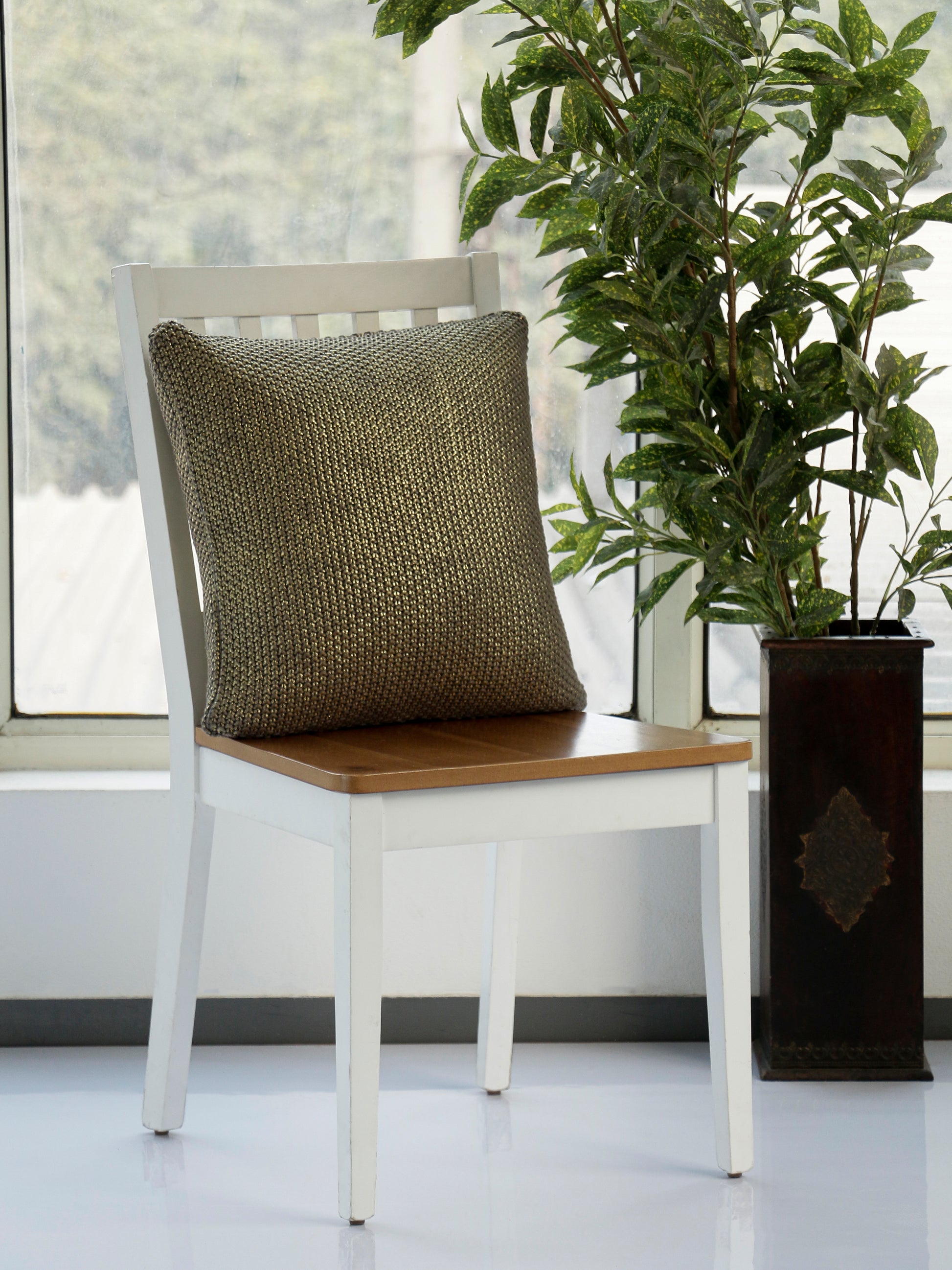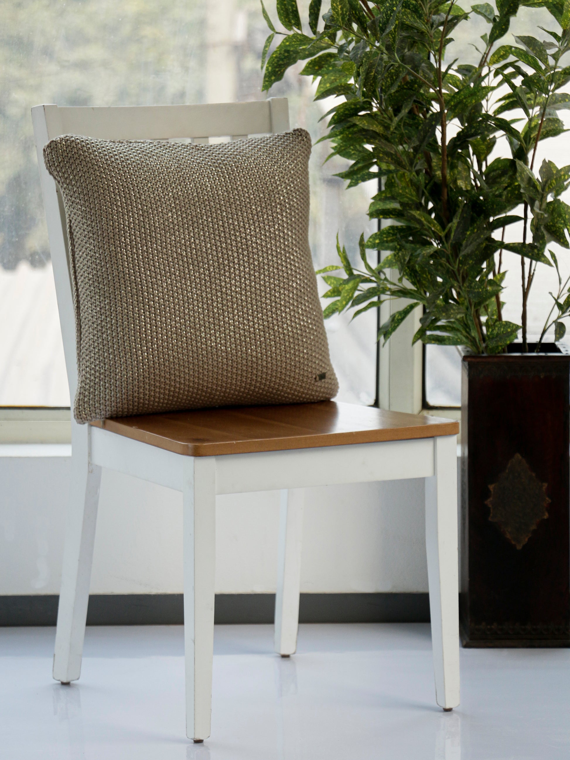 Enhance your decor with Moss Knit Foil Print Cushion Cover. This beautifully made Textured cushion cover (No Fill Inside) is expertly knitted in 100% Quality Cotton.