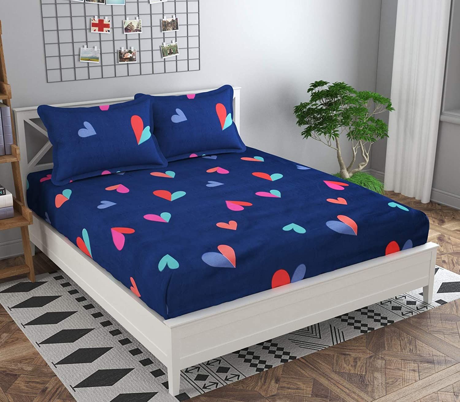 Heart - Glace Cotton Double Bedsheet With 2 Pillow Covers