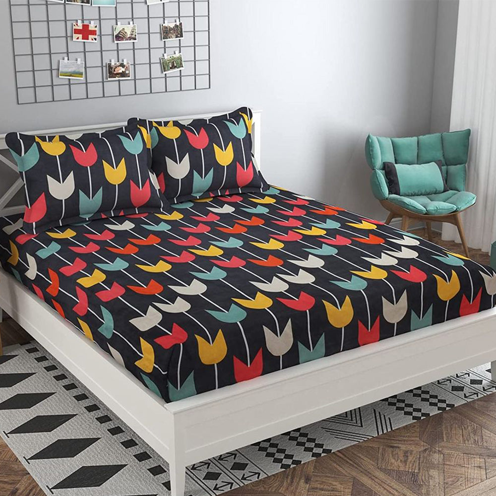 Queen Size glace cotton bedsheet with 2 Pillow covers, super soft fabric, fast color, attractive and shining design for your room.