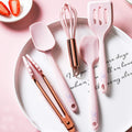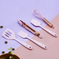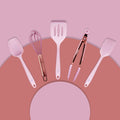 Set Of Five Pink And Rose Gold Silicone Mini Kitchen Utensil Set