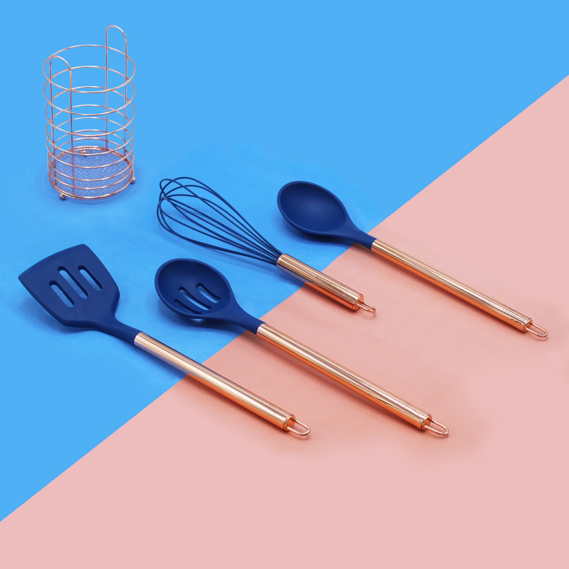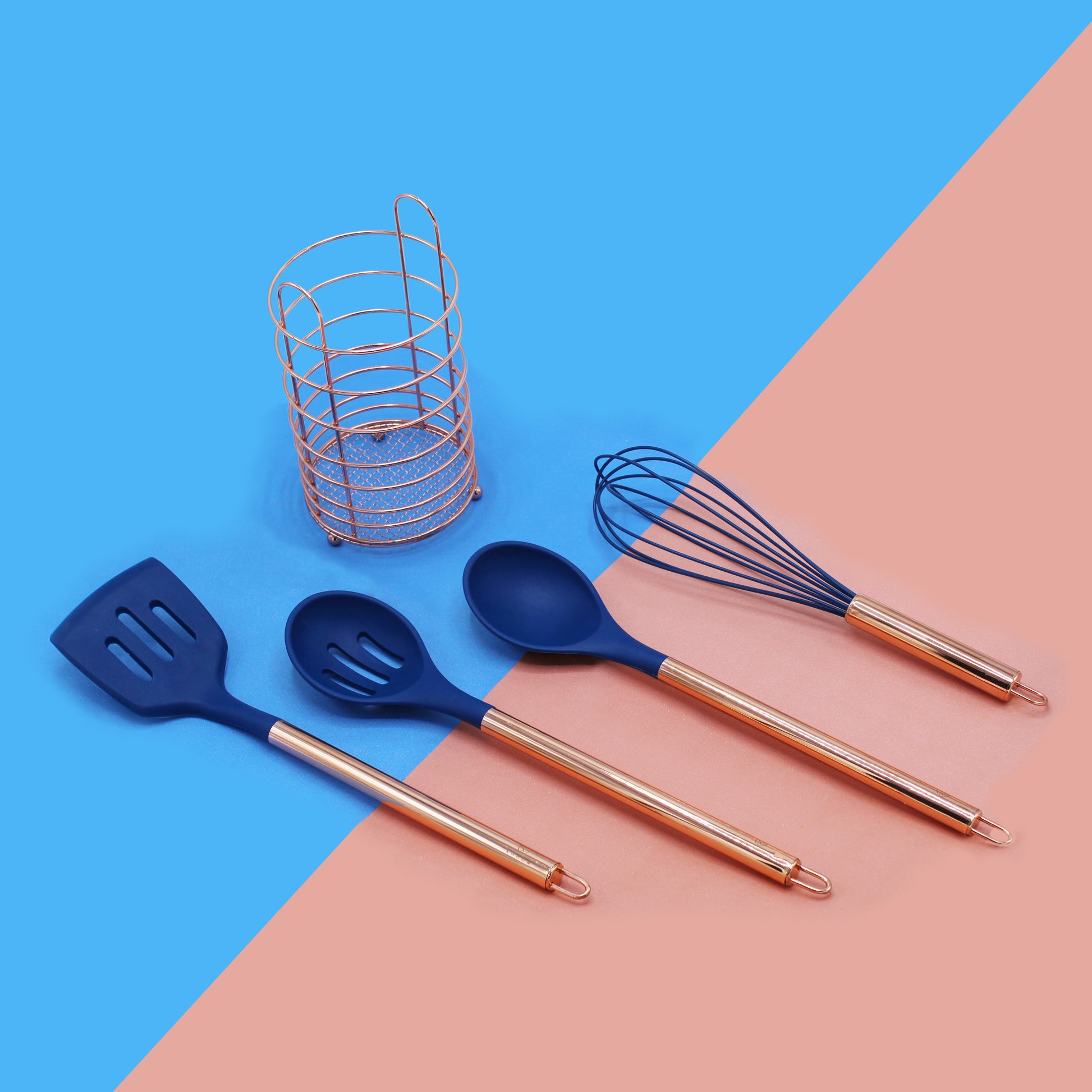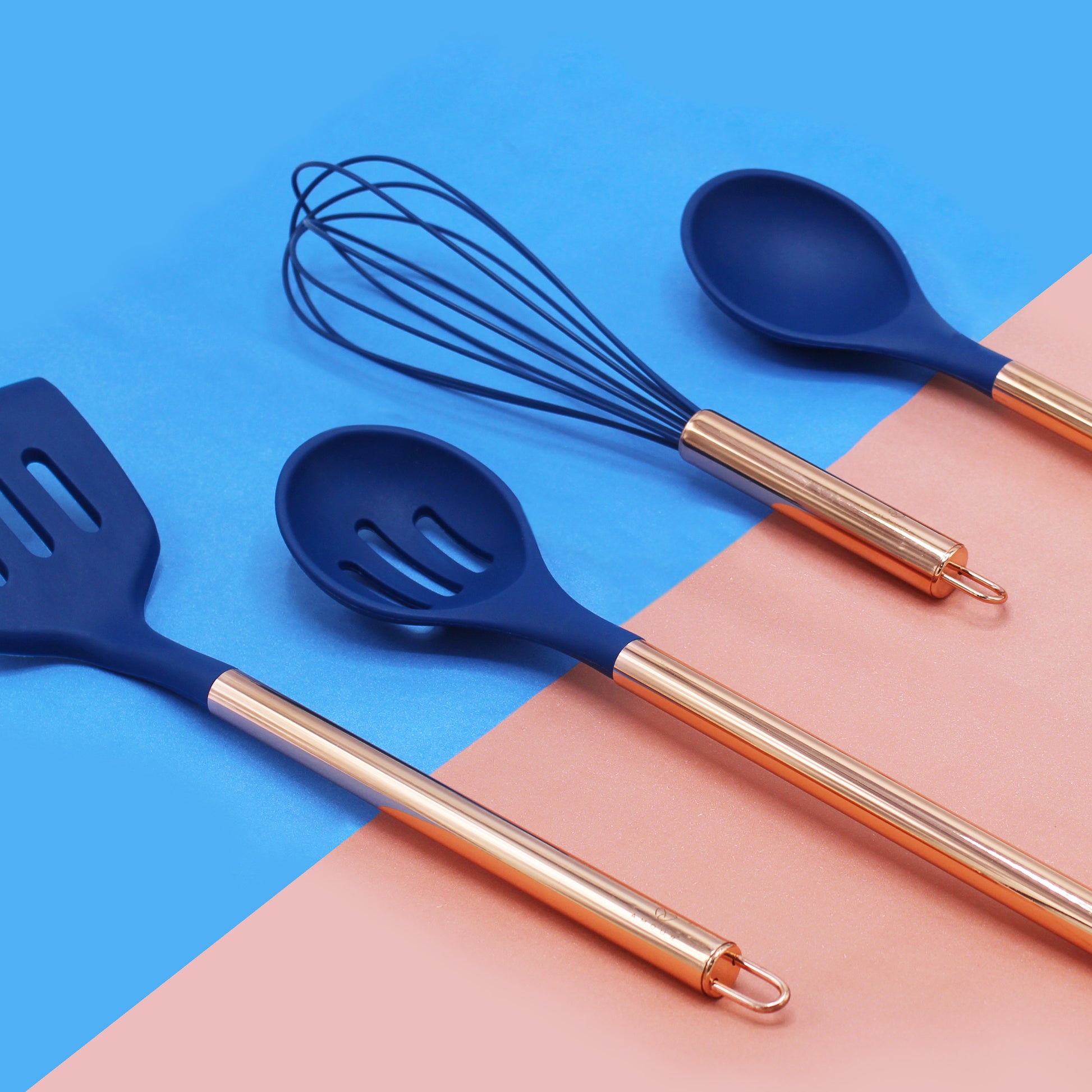 - The best quality material is chosen that would last a lifetime: carefully crafted with the highest standard BPA-free silicone & Gold plated handle. By using top-graded material, our 5-piece set provides perfect balanced weight, it's easy to grip and very practical for cooking.