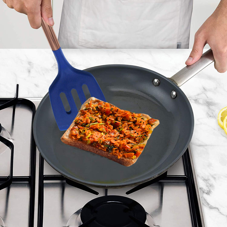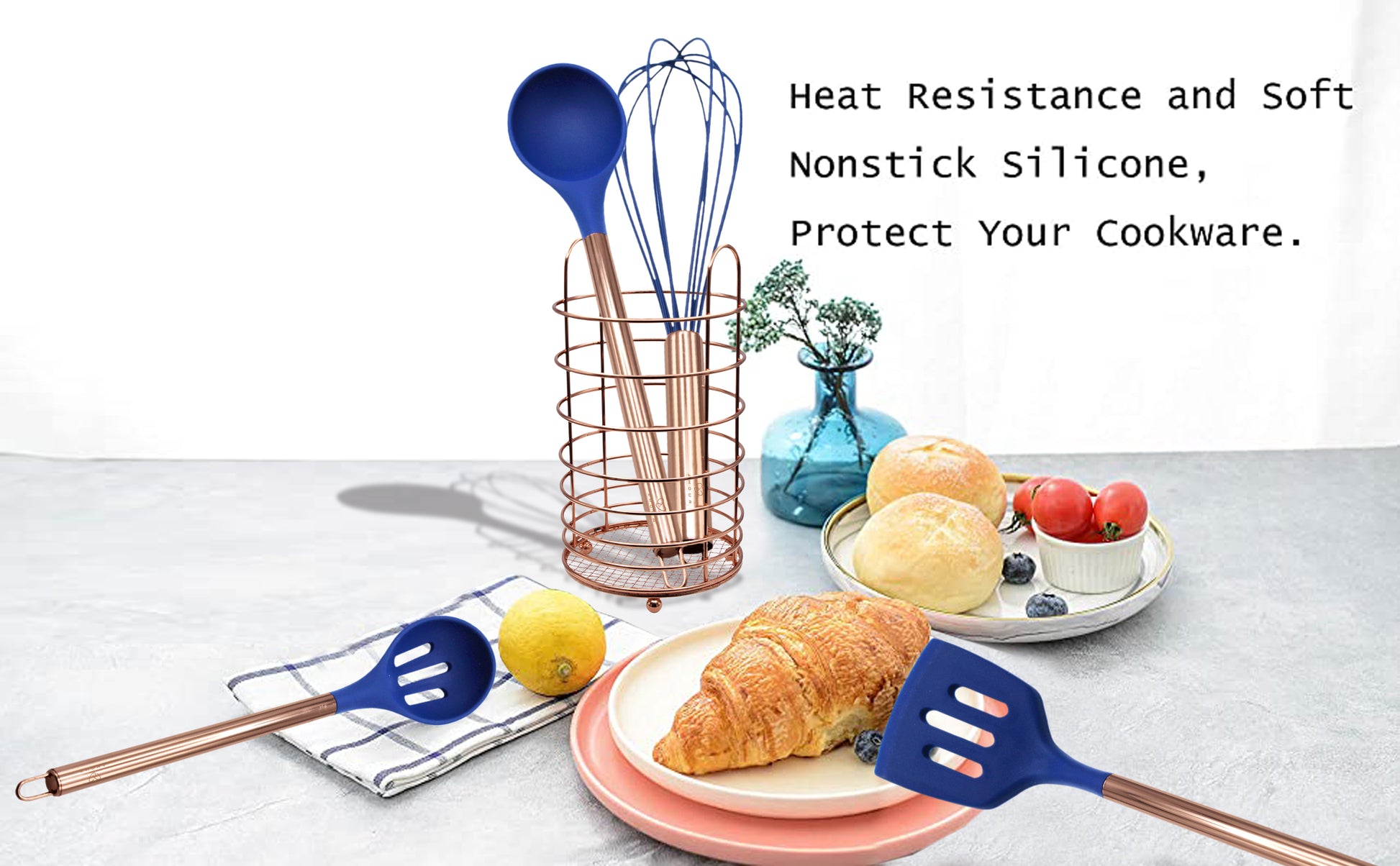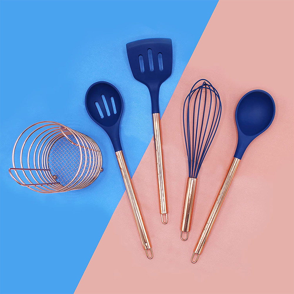 - The best quality material is chosen that would last a lifetime: carefully crafted with the highest standard BPA-free silicone & Gold plated handle. By using top-graded material, our 5-piece set provides perfect balanced weight, it's easy to grip and very practical for cooking.