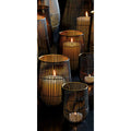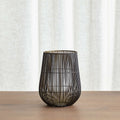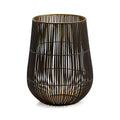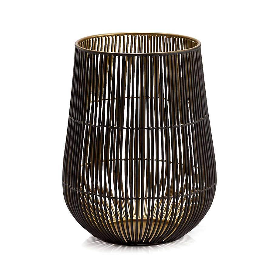 candles in a basket of two-toned iron. Its black exterior accentuates the