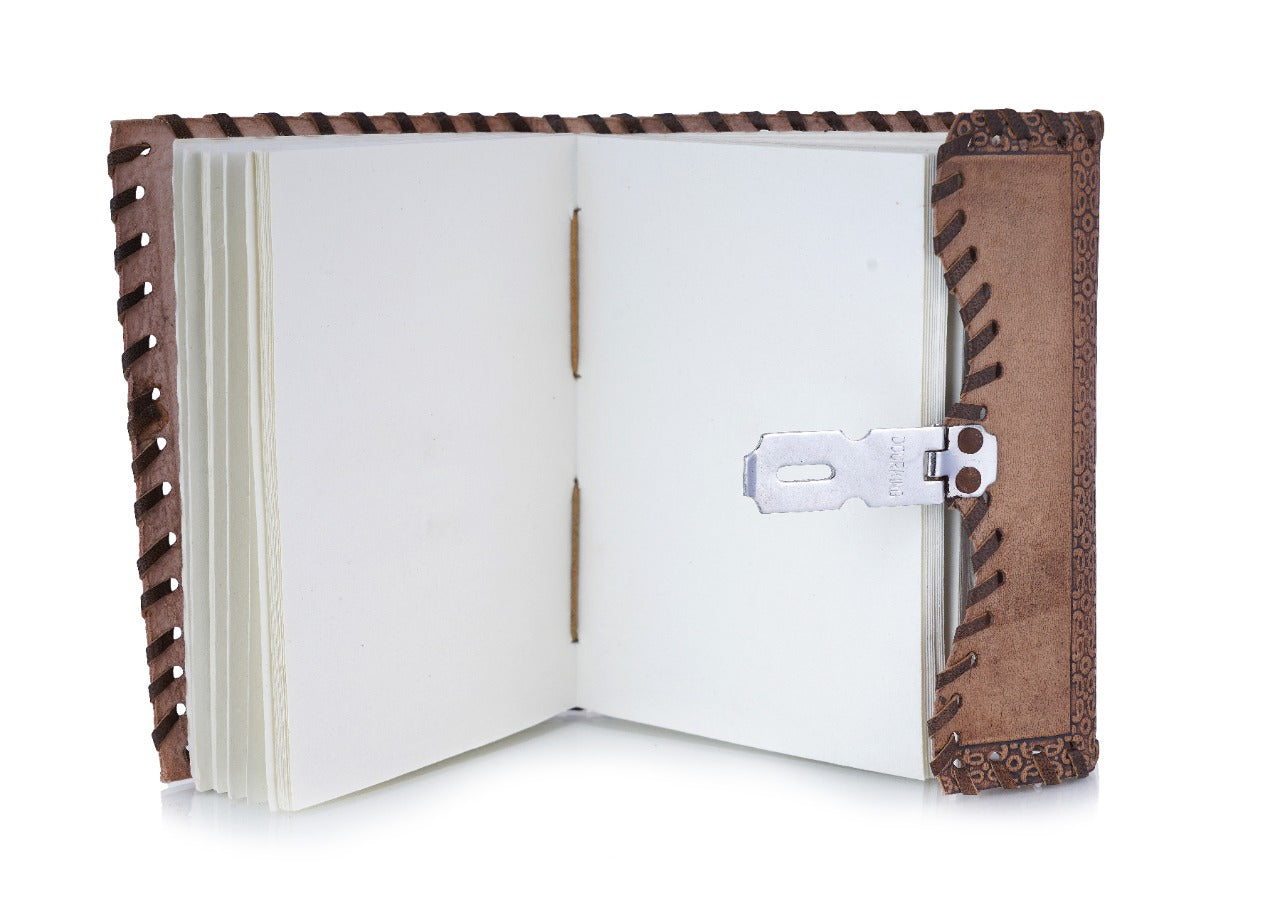 It's an eco-friendly handmade leather journal with Beautiful cover. The journal is consisting of handmade sketch papers (khadi papers). Every page of this journal will become a gem with your precious memories.