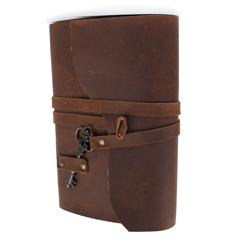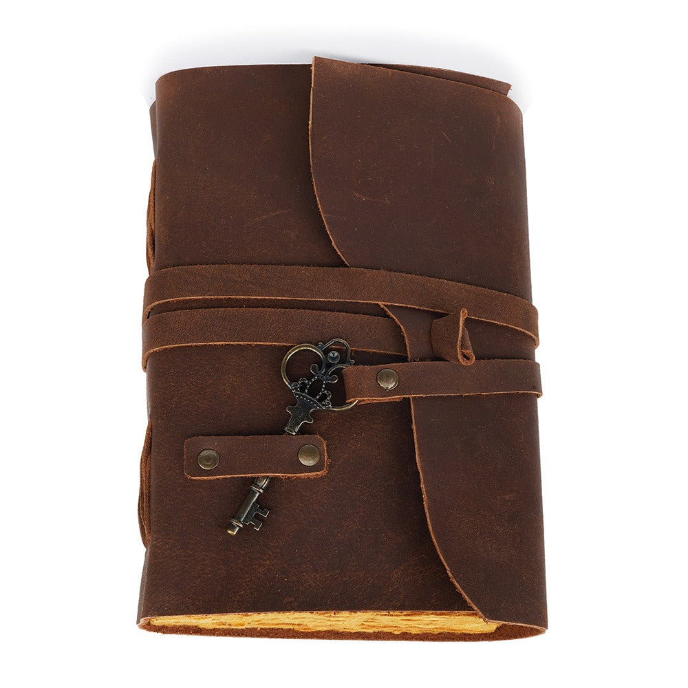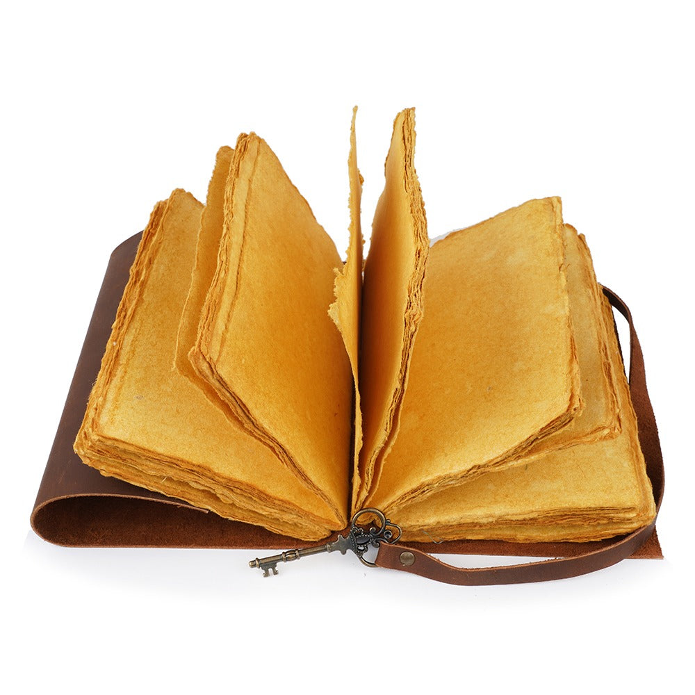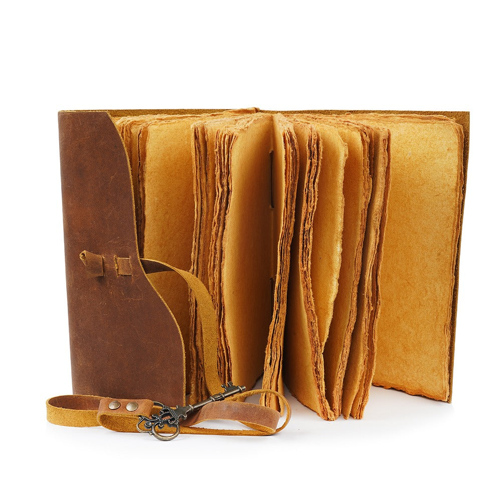 It's an eco-friendly handmade leather journal with a beautiful cover. The journal is consisting of handmade vintage papers. Every page of this journal will become a gem with your precious memories.