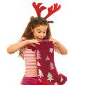 This beautiful knitted Christmas stocking can be used as a gift bag or a hanging decoration for a Christmas tree, at the end of the bed, mantel, staircase or to beautify a bare wall.